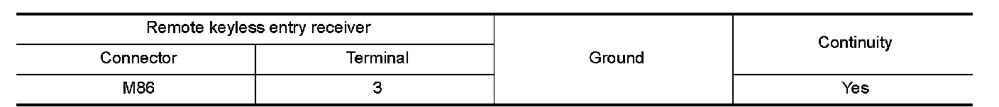 Check continuity between remote keyless entry receiver harness connector and ground.