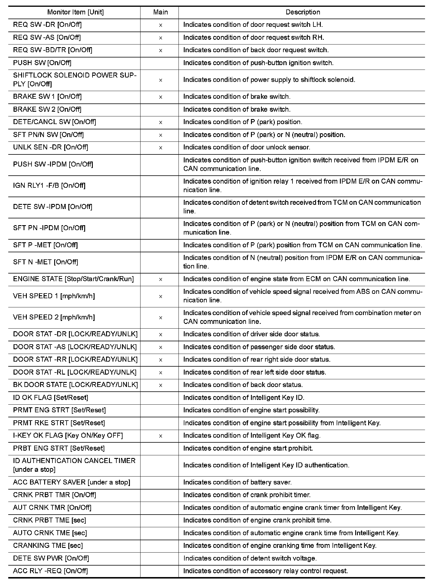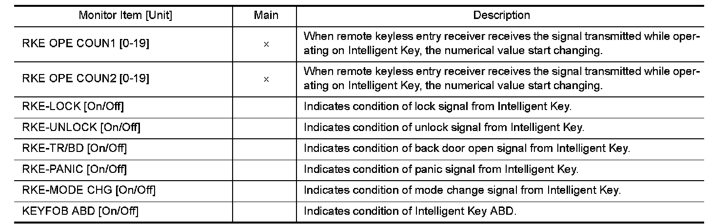 INTELLIGENT KEY : CONSULT Function (BCM - INTELLIGENT KEY)