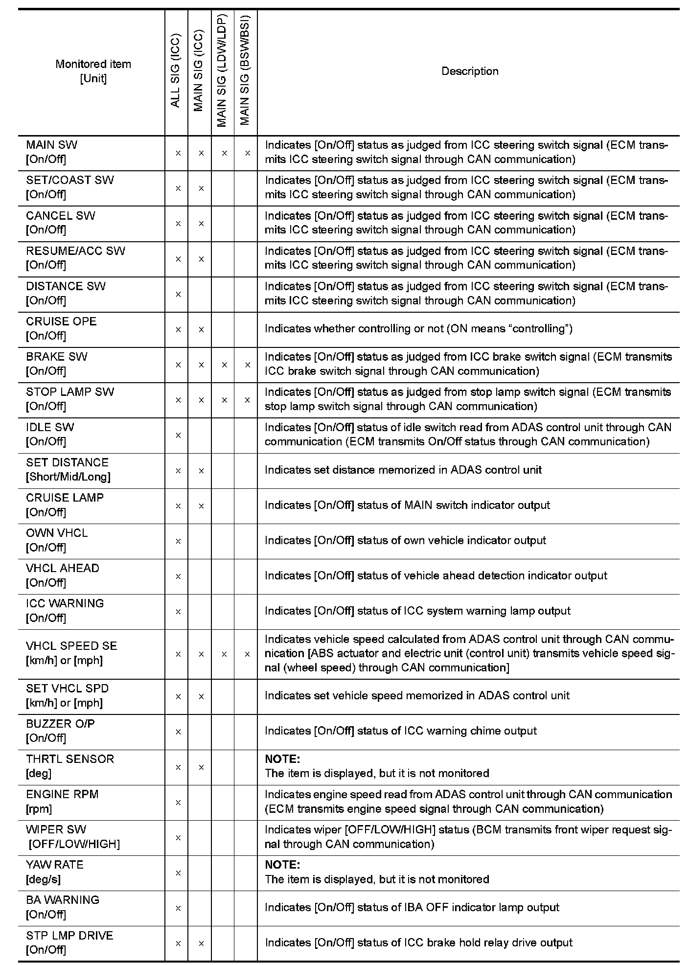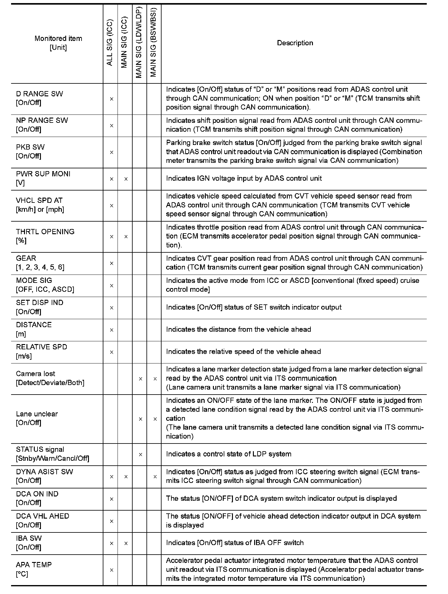CONSULT performs the following functions via CAN communication using ADAS control unit.