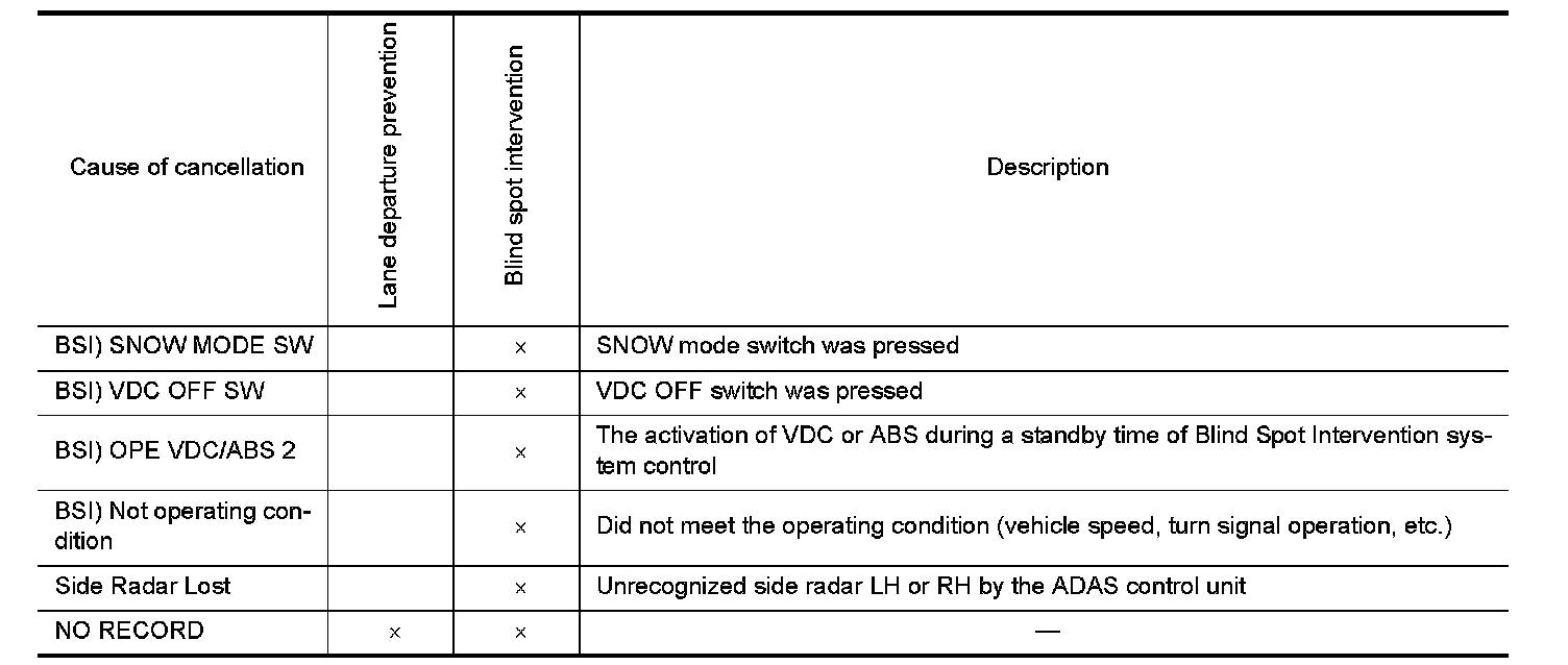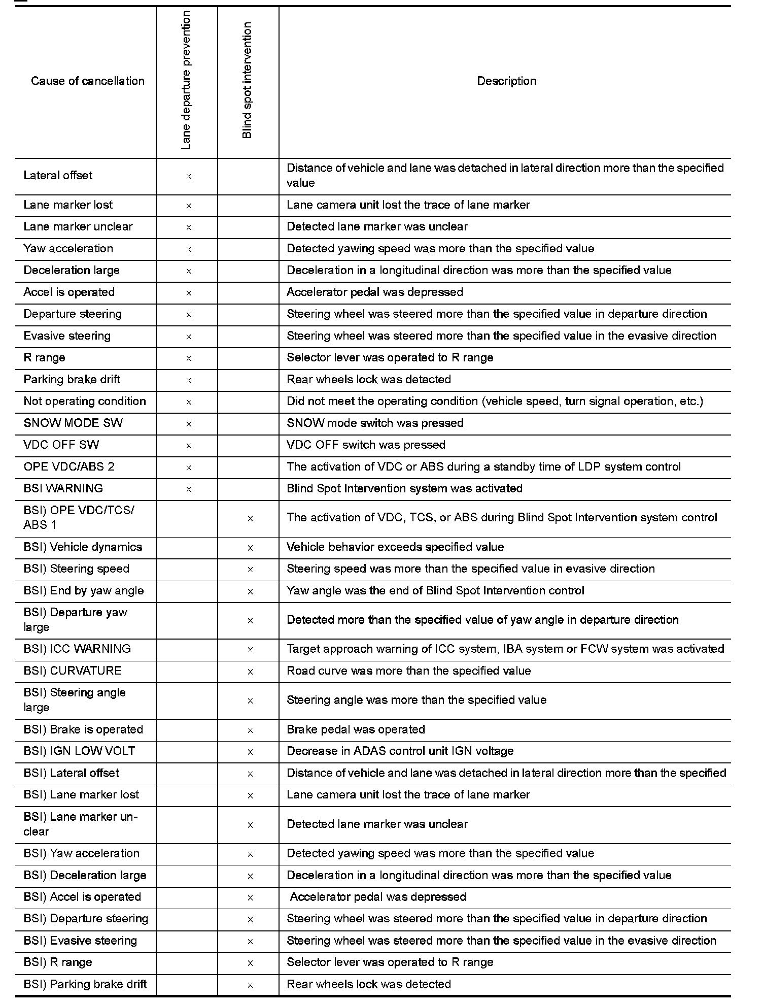 - Blind Spot Warning/Blind Spot Intervention warning lamp