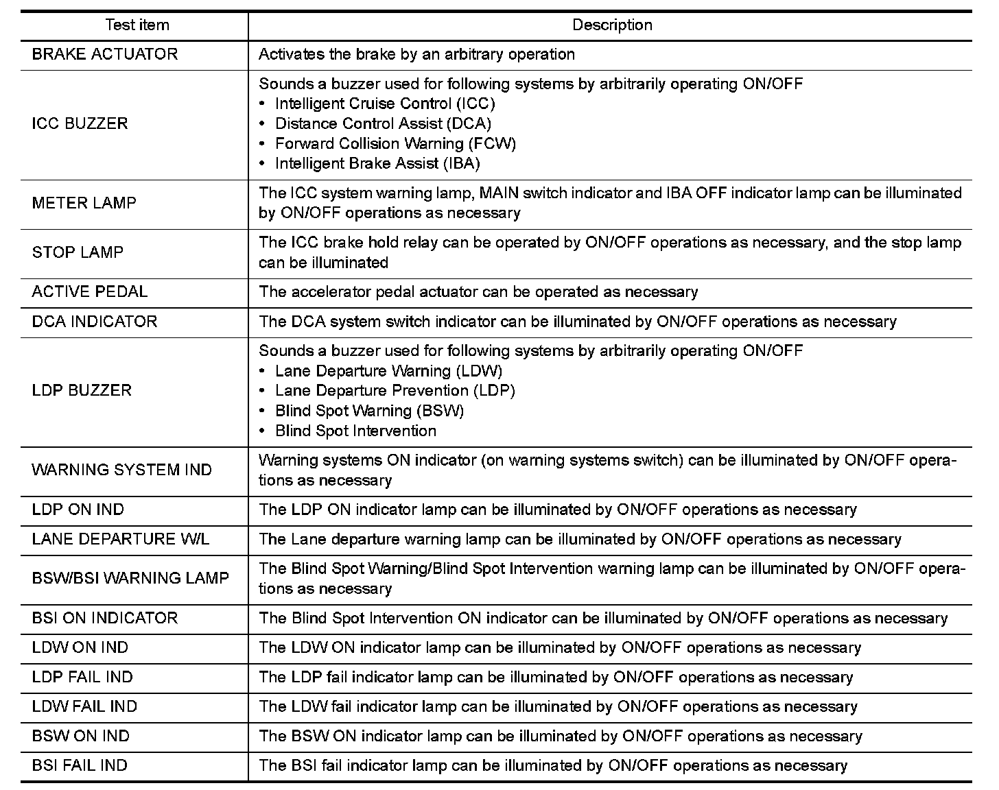 - The "Active Test" cannot be performed when the following systems warning lamp is illuminated.