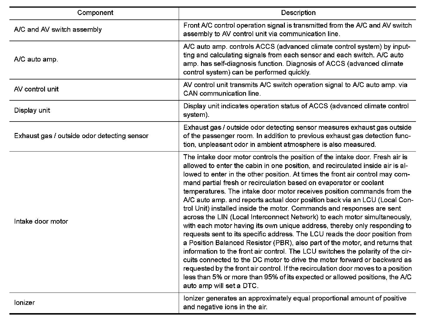 ACCS (ADVANCED CLIMATE CONTROL SYSTEM) : Component Description