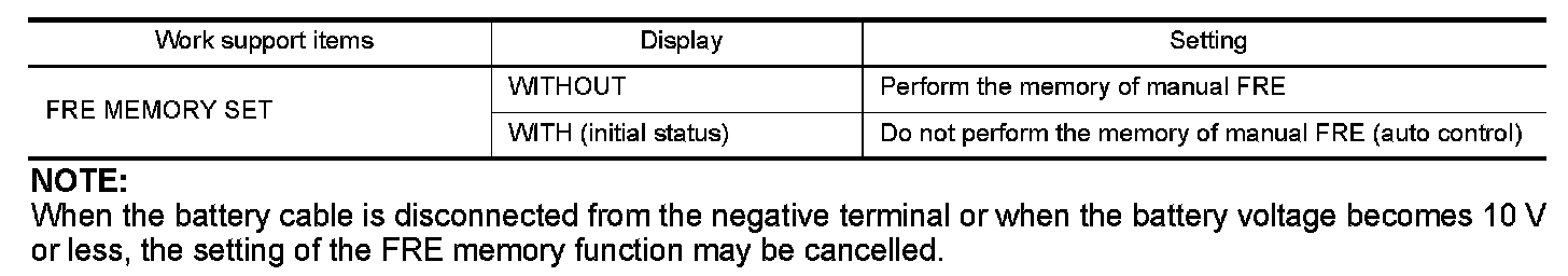 or less, the setting of the FRE memory function may be cancelled.