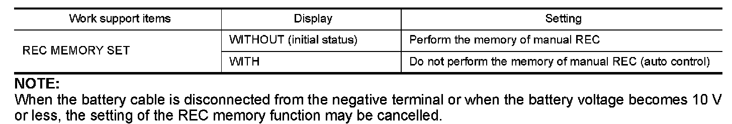 Perform the "REC MEMORY SET" of HVAC work support item.