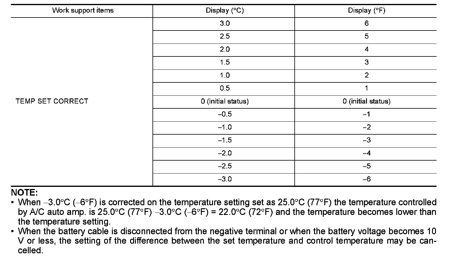 - When 3.0�C (-6�F) is corrected on the temperature setting set as 25.0�C (77�F) the temperature controlled by A/C auto amp. is 25.0�