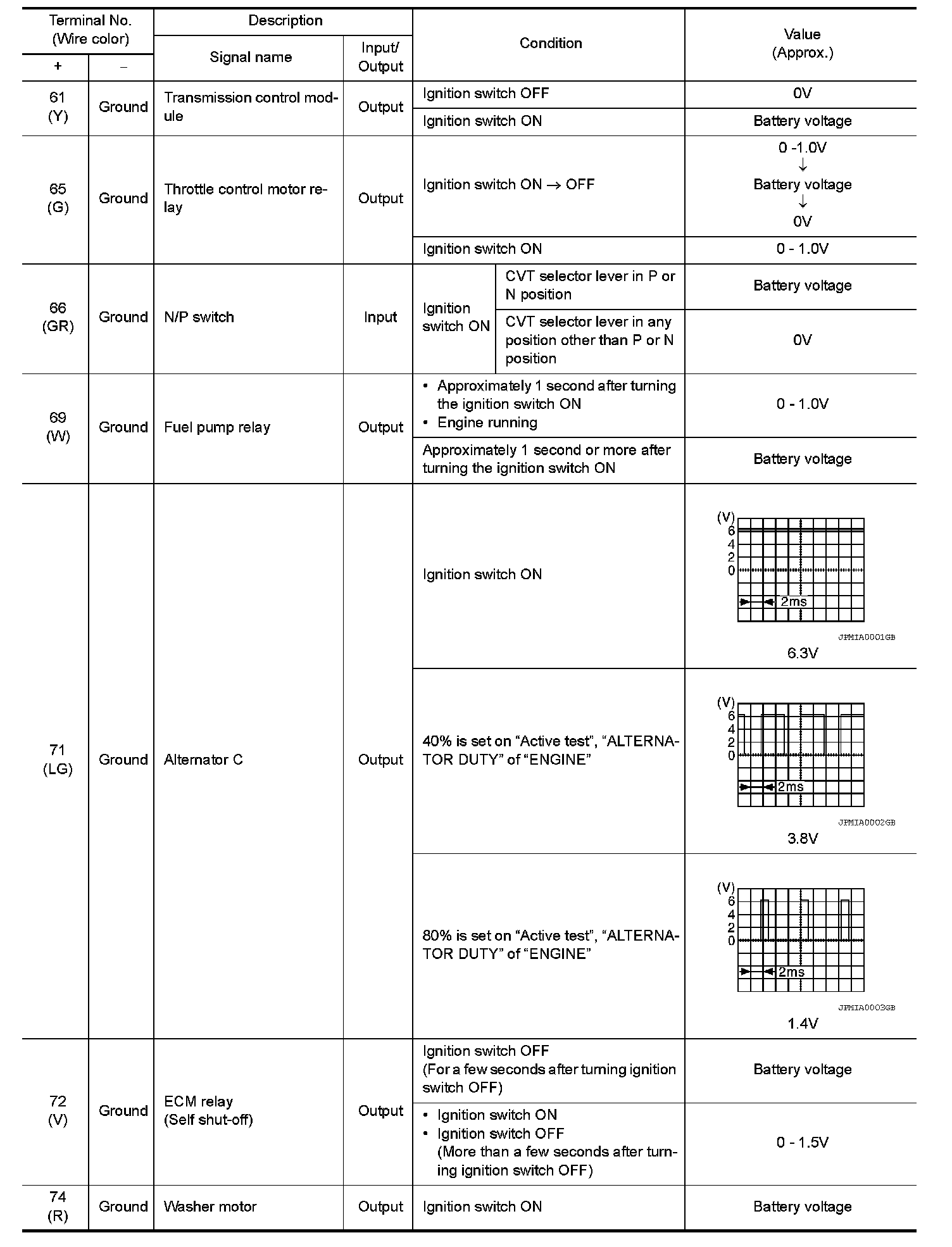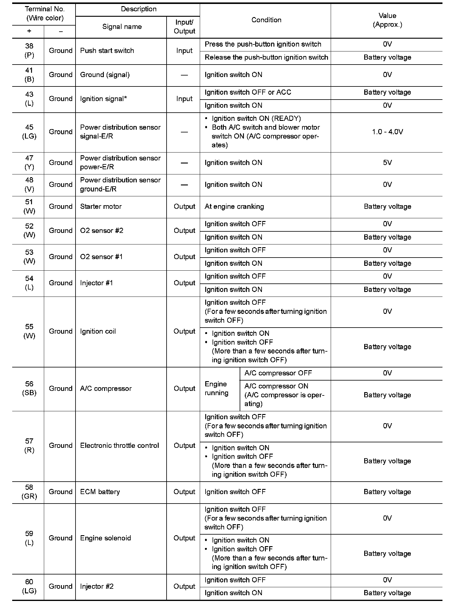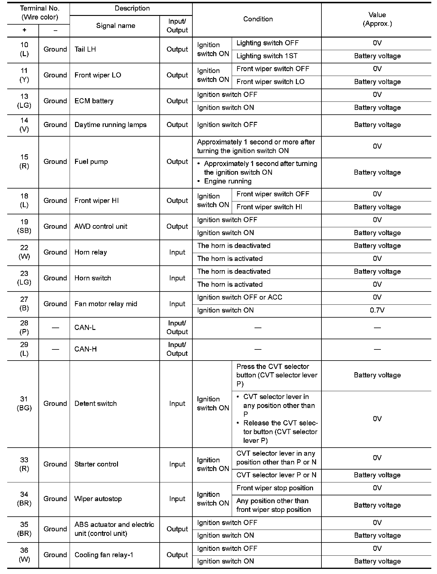 Pinout Values and Diagnostic Parameters