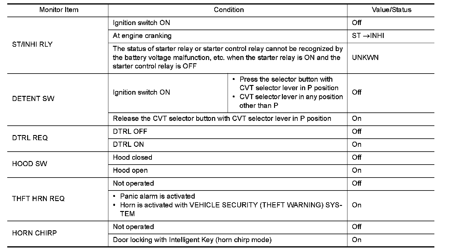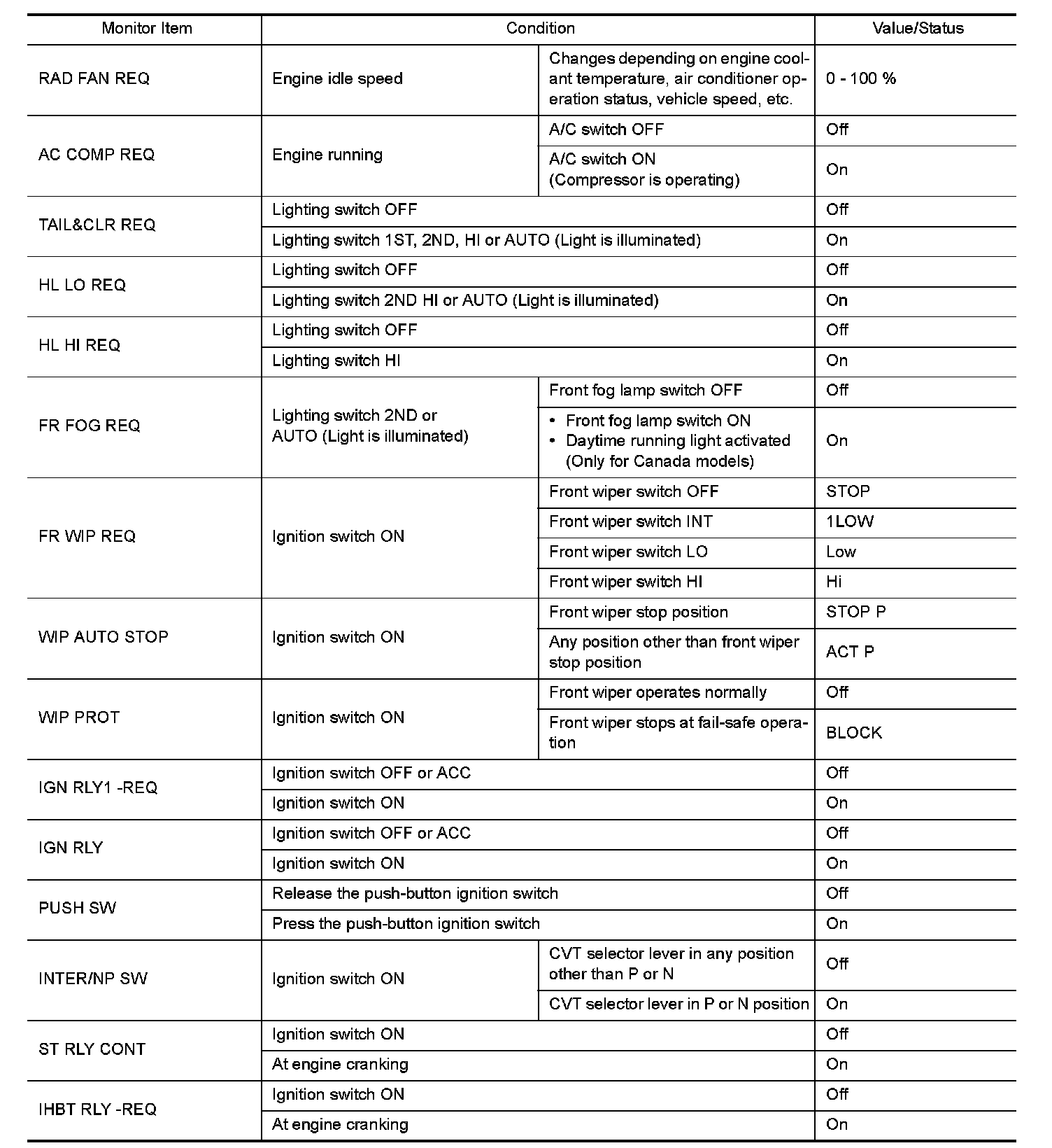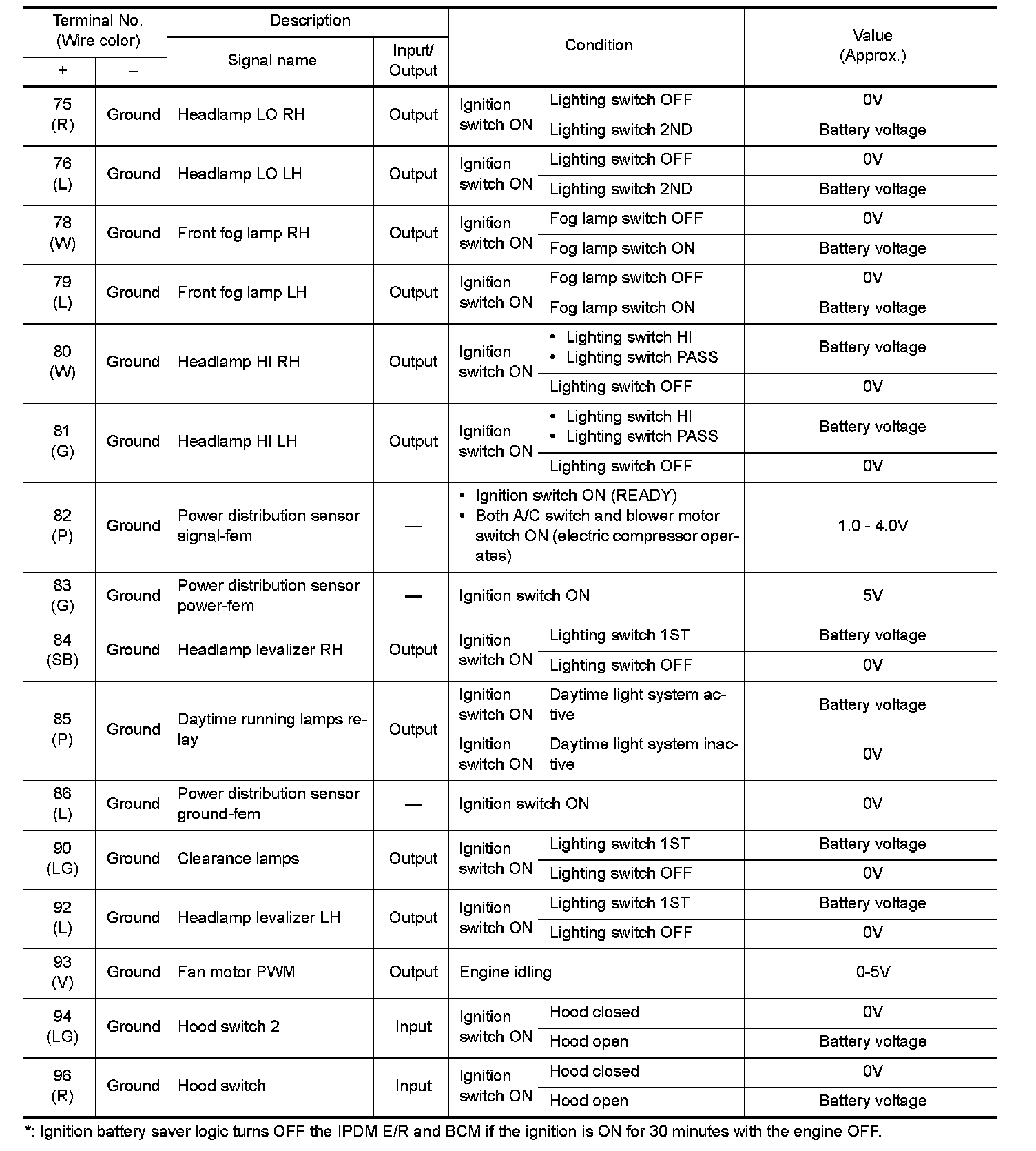 Pinout Values and Diagnostic Parameters