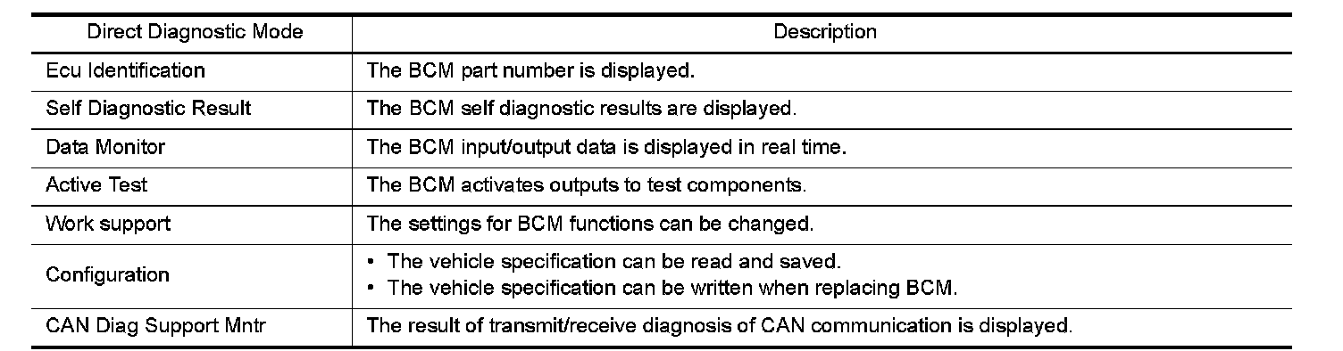 CONSULT performs the following functions via CAN communication with BCM.