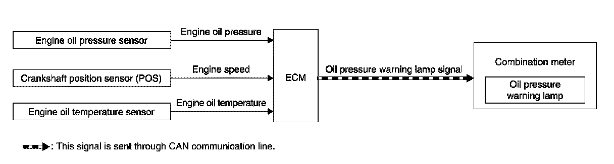 - When detecting a decrease in engine oil pressure at an engine speed 1,000 rpm or more, ECM transmits an oil pressure warning lamp signal to the combination meter.