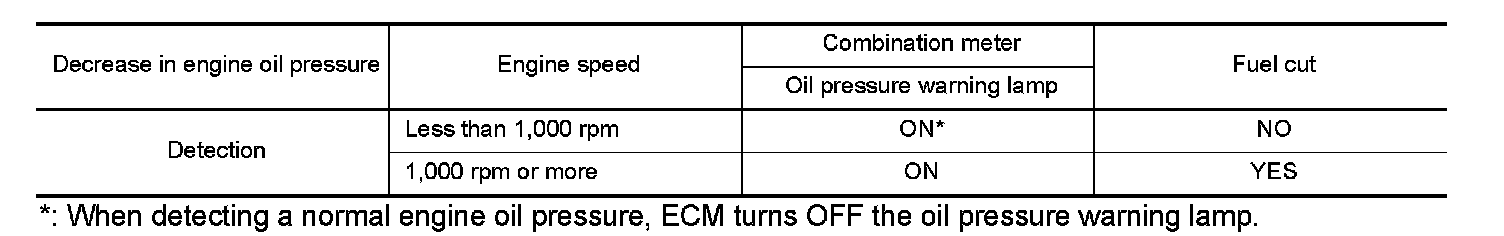 *: When detecting a normal engine oil pressure, ECM turns OFF the oil pressure warning lamp.