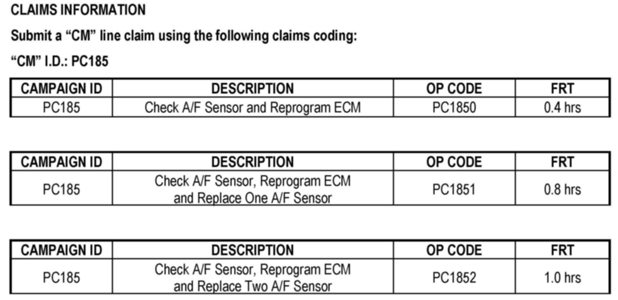 Campaign PC185 - ECM Update For Air Fuel Sensor: Overview