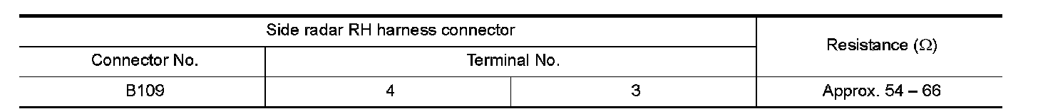 3.Check the terminals and connectors of the side radar RH for damage, bend and loose connection (unit side and connector side).