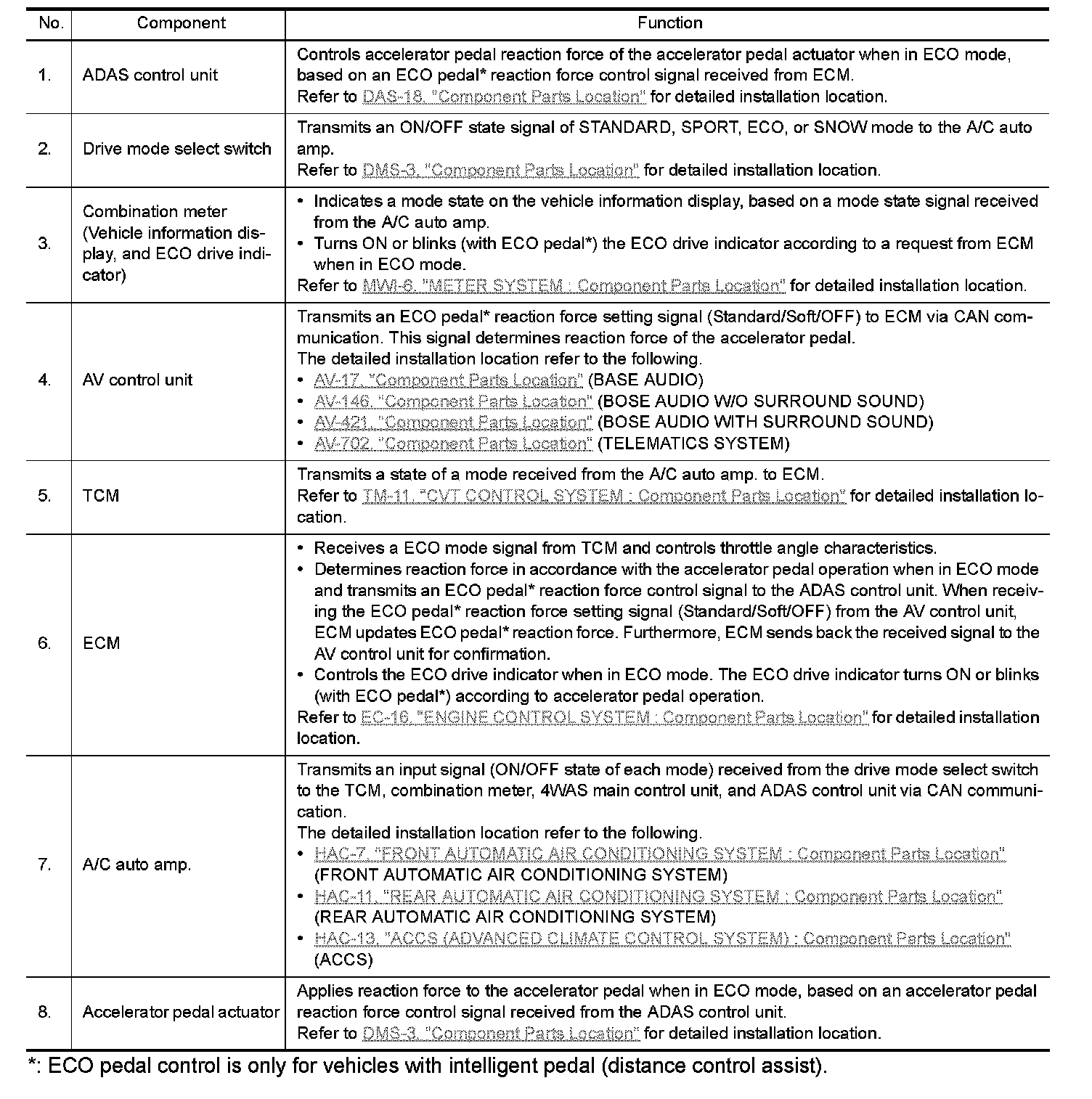 *: ECO pedal control is only for vehicles with intelligent pedal (distance control assist).