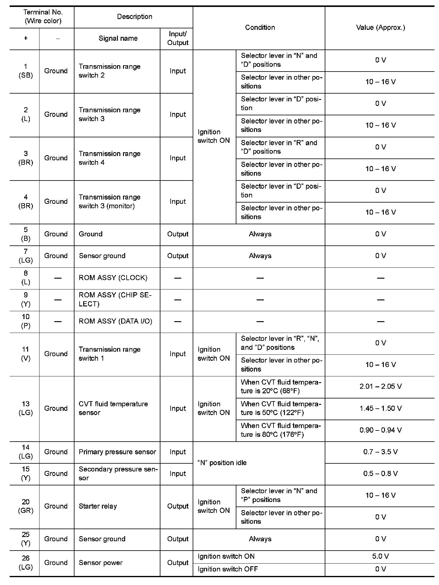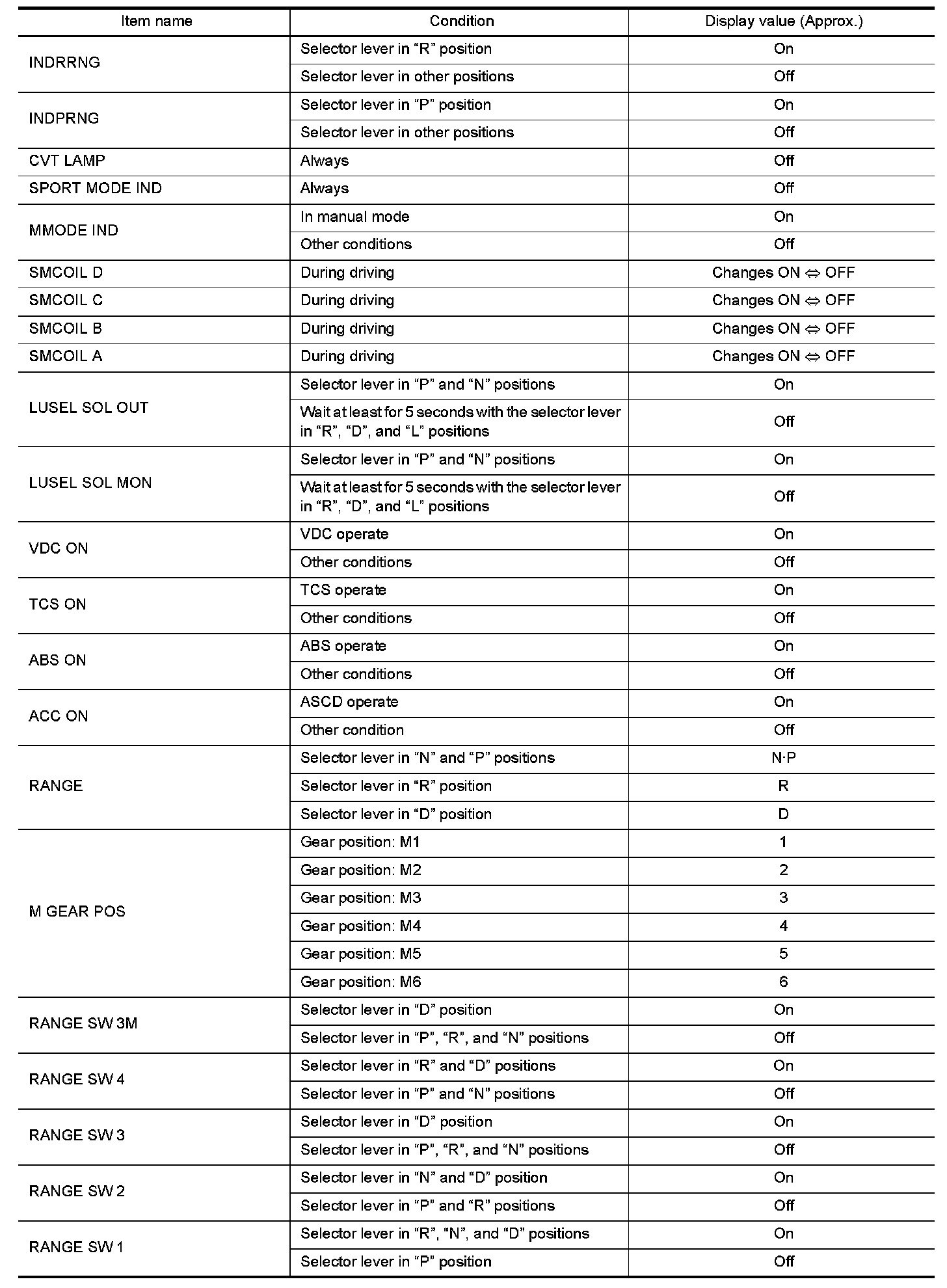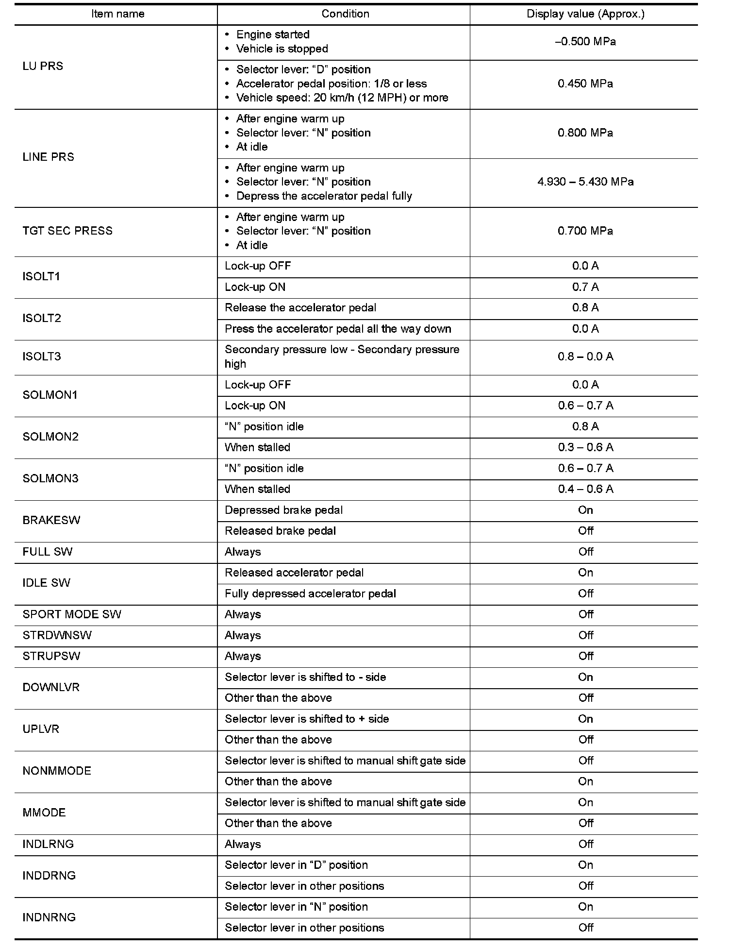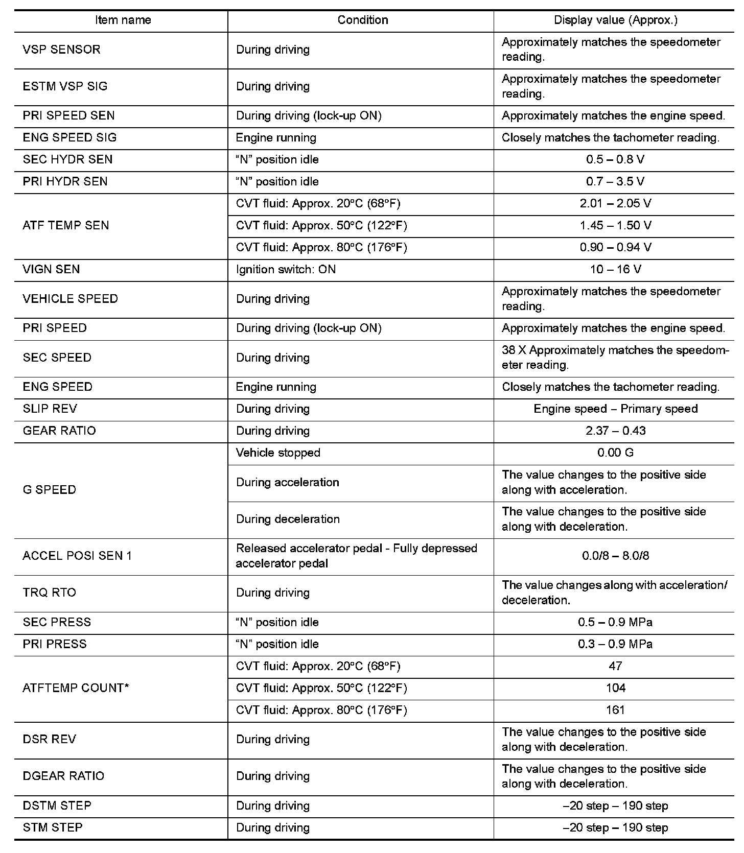 CONSULT DATA MONITOR STANDARD VALUE