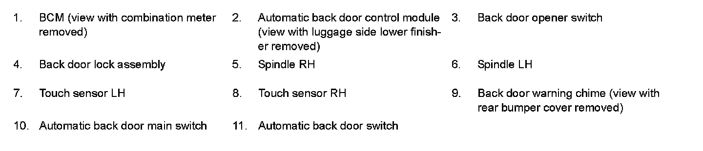 AUTOMATIC BACK DOOR SYSTEM : Component Parts Location