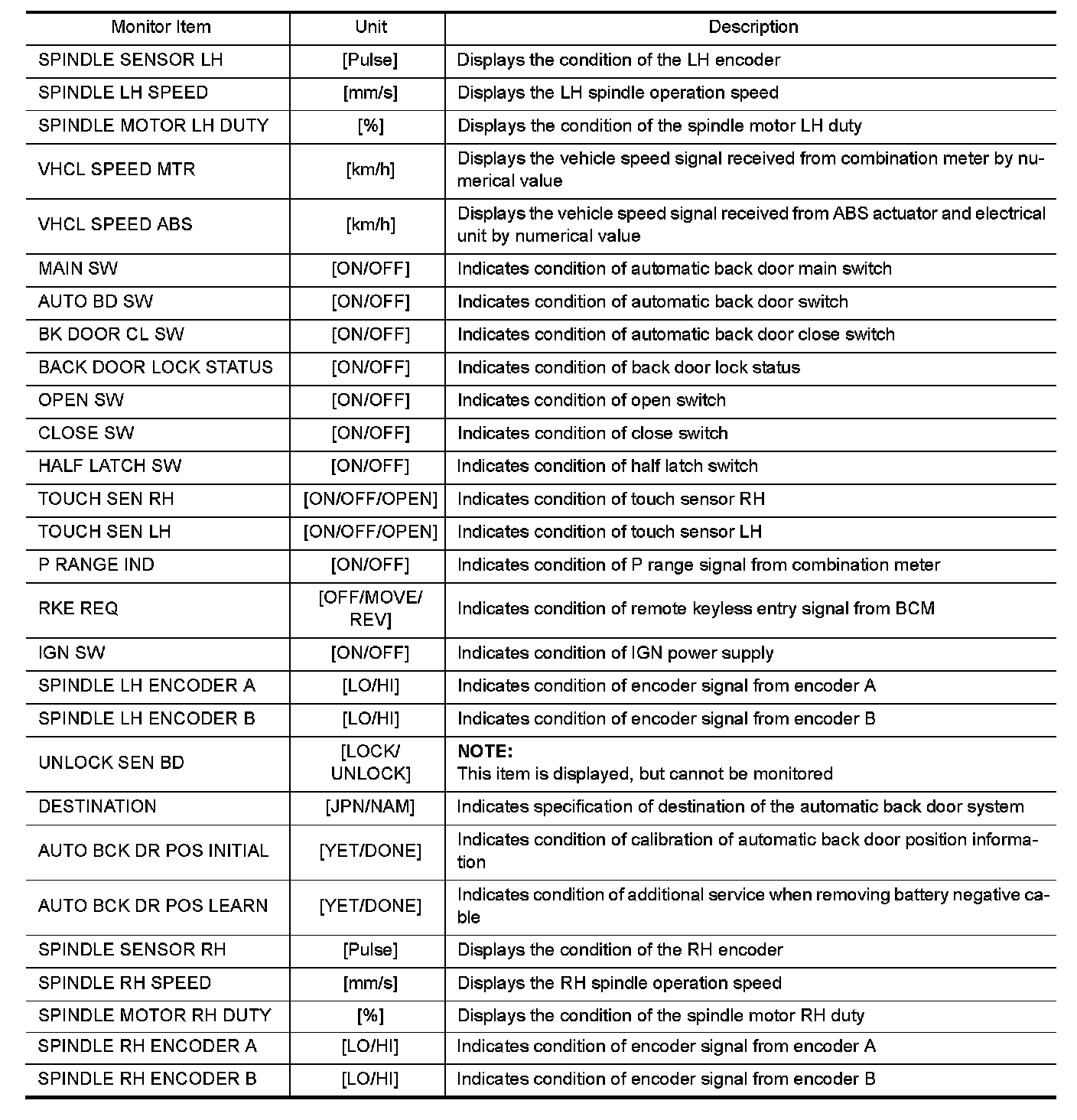 DIAGNOSIS SYSTEM (AUTOMATIC BACK DOOR CONTROL UNIT)