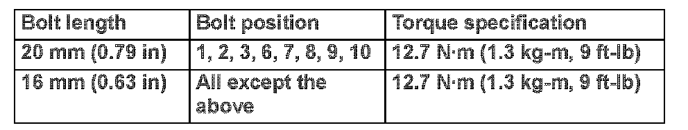 Tighten the bolts in the numerical order as shown. There are two bolt lengths used. Follow the chart below for proper bolt length specifications.
