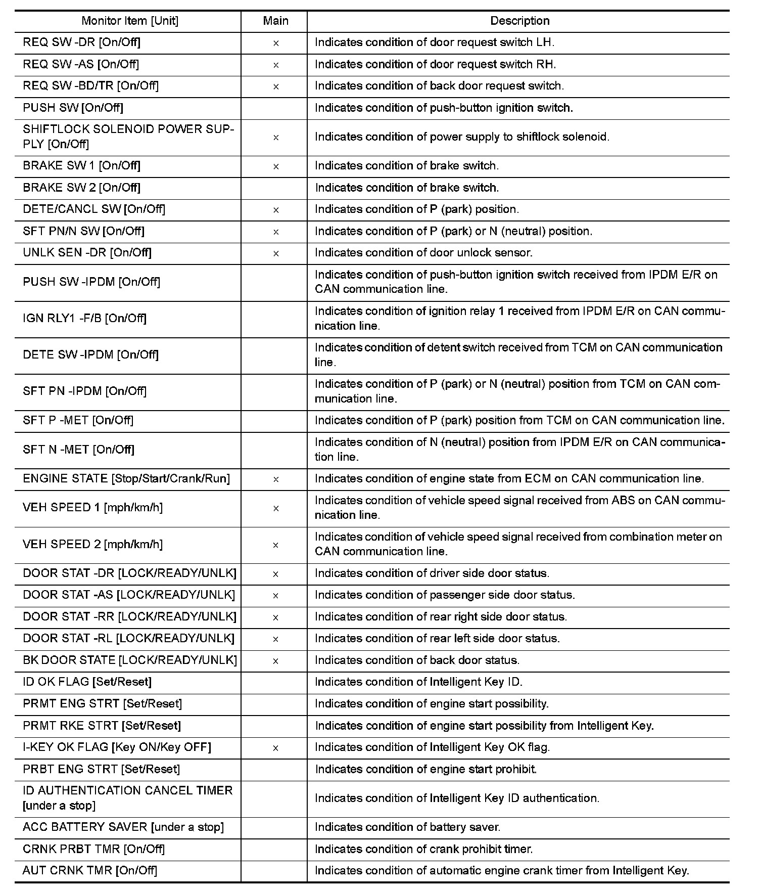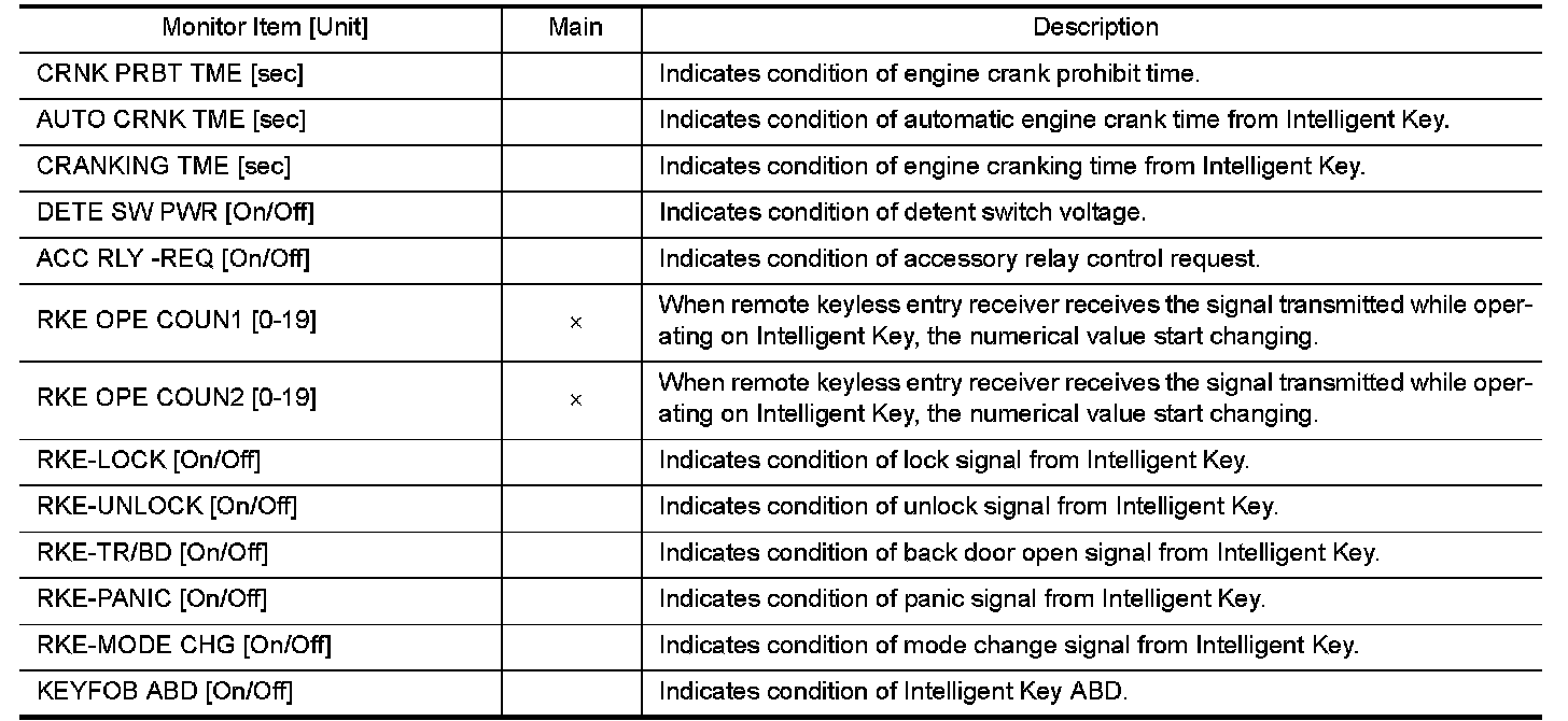 Consult Function (BCM - Intelligent Key)