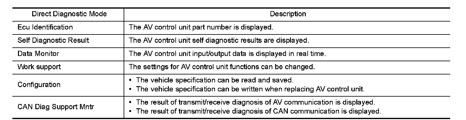 DIAGNOSIS SYSTEM (AV CONTROL UNIT)