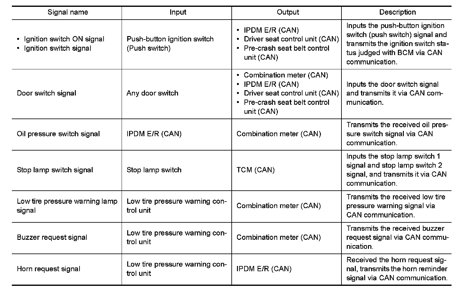 Signal transmission function list