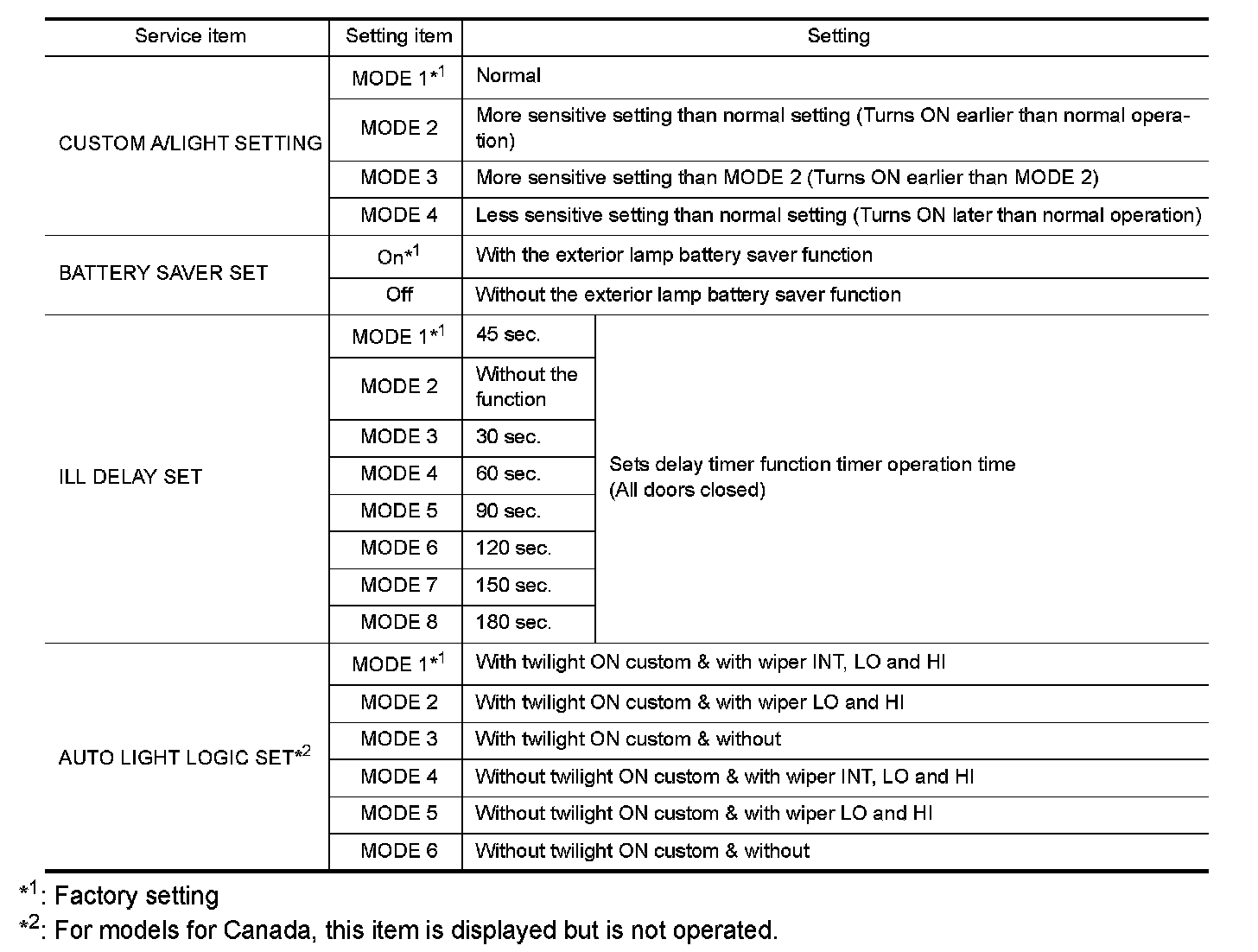 *: For models for Canada, this item is displayed but is not operated.
