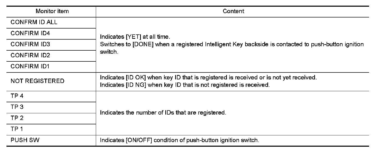 The following table includes information (items) inapplicable to this vehicle. For information (items) applicable to this vehicle, refer to CONSULT display items.