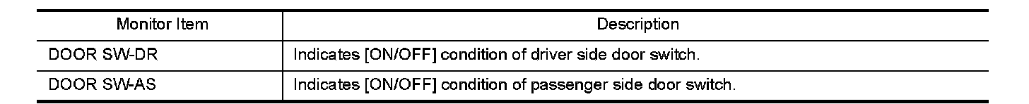 The following table includes information (items) inapplicable to this vehicle. For information (items) applicable to this vehicle, refer to CONSULT display items.