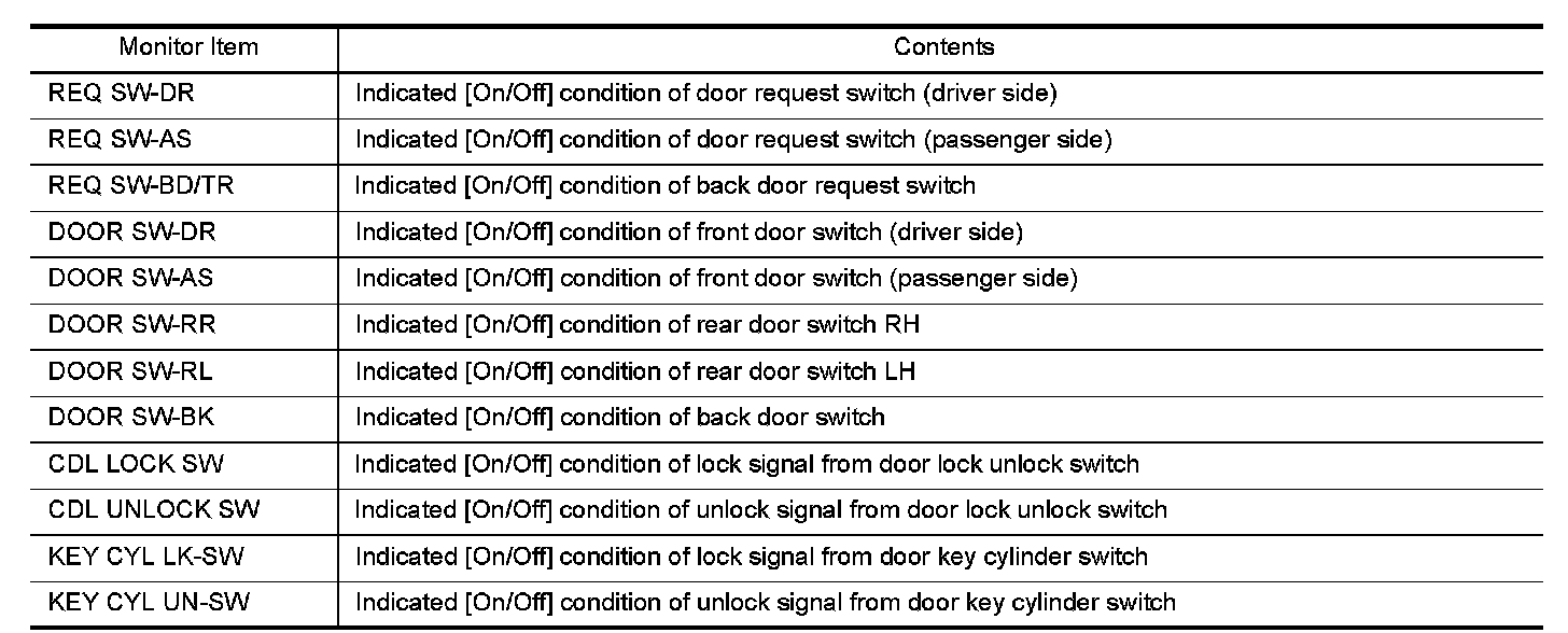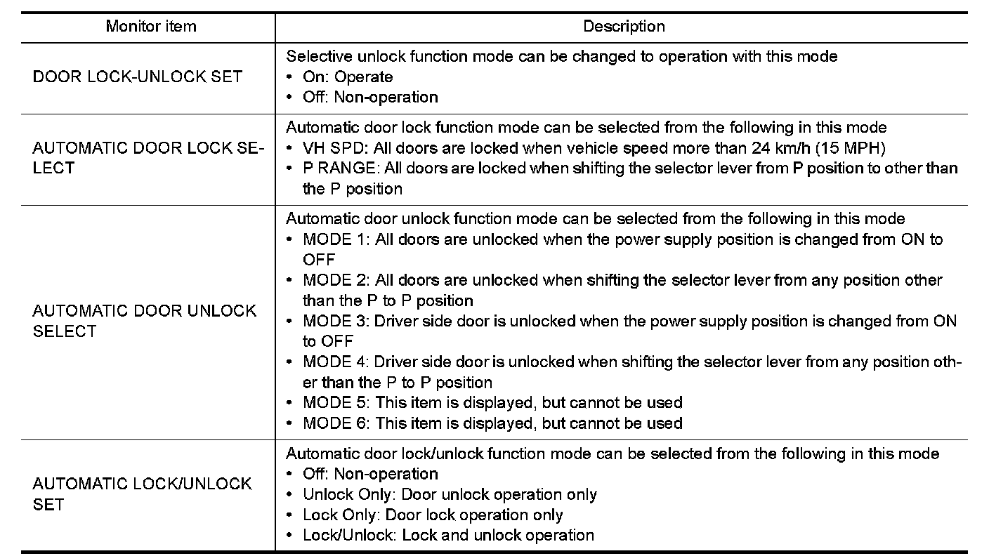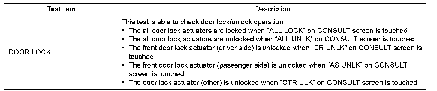 DOOR LOCK : CONSULT Function (BCM - DOOR LOCK)