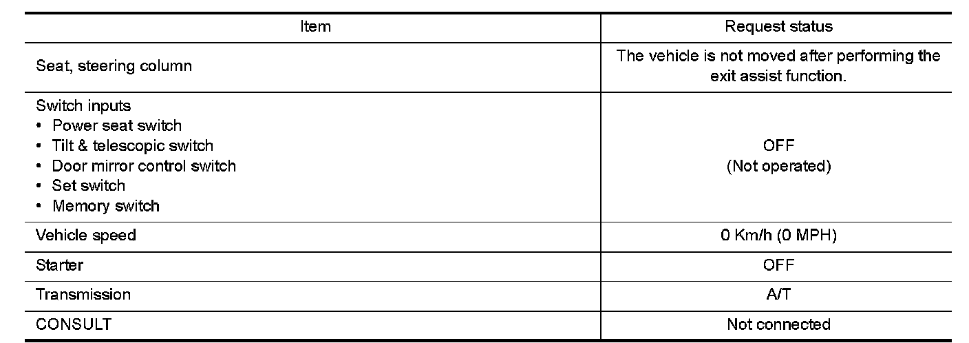 Satisfy all of the following items. The entry assist function is not performed if these items are not satisfied.