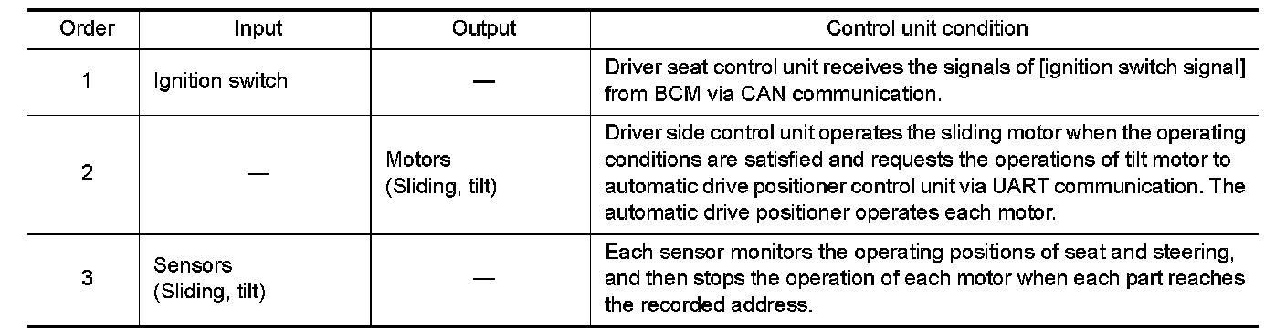 2.Driver seat and steering column will return from the exiting position to entry position.