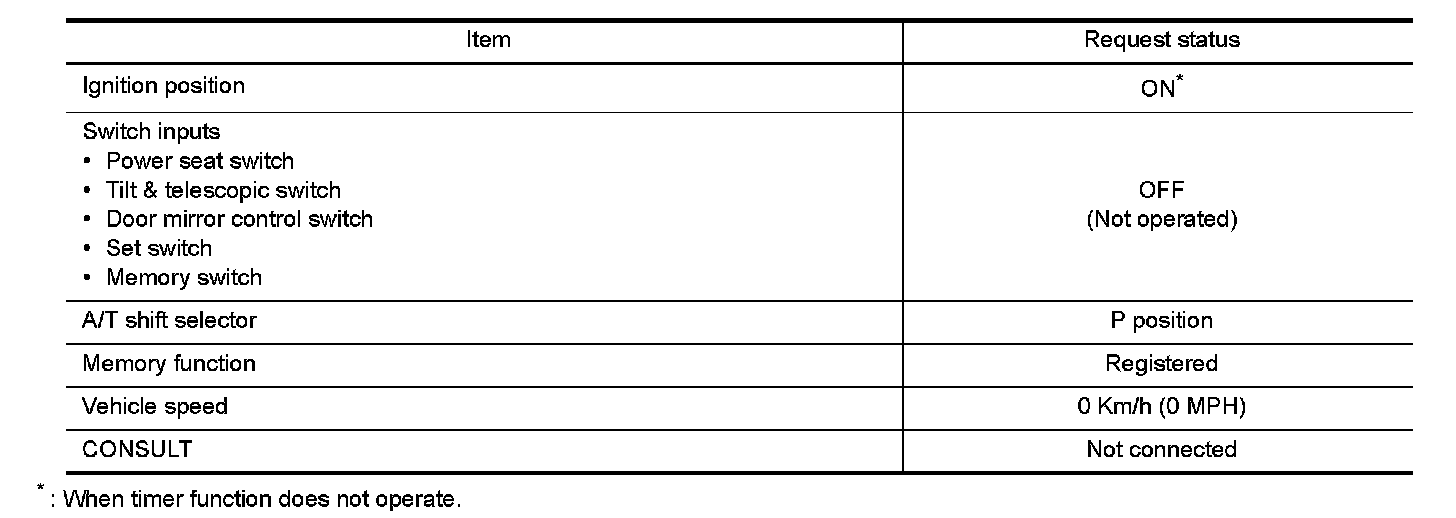 - Satisfy all of the following items. The timer function is not performed if these items are not satisfied.
