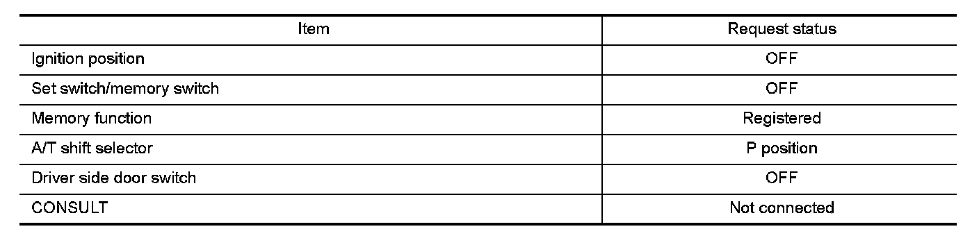 - The memory function can be performed for 45 seconds after opening the driver door even if the ignition switch position is in OFF position.