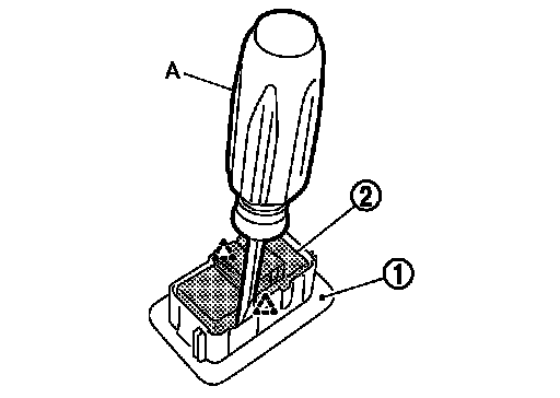 2.Press pawls and remove seat memory switch (2) from front door garnish (1), with remover tool (A).
