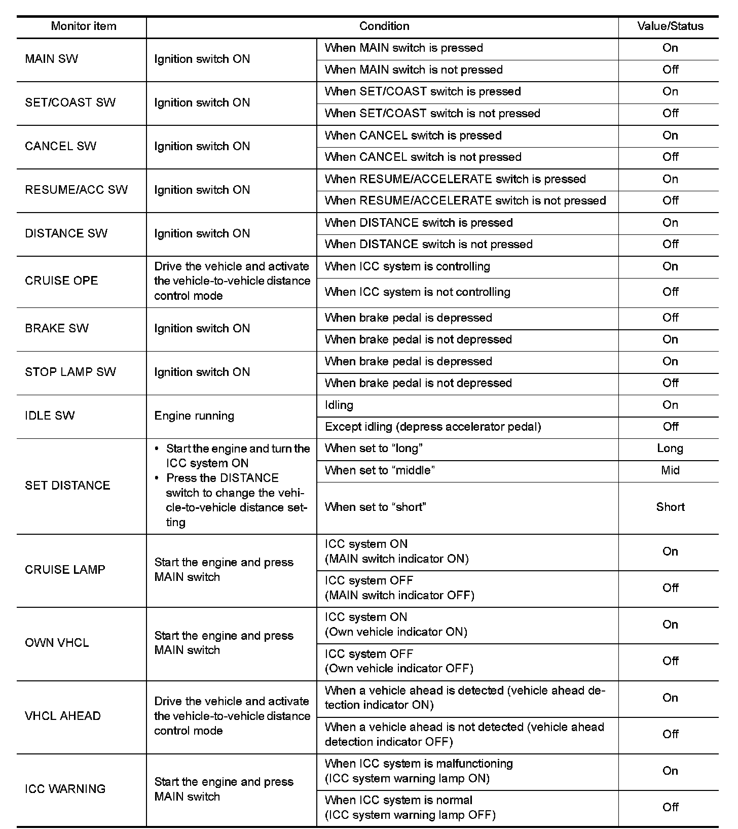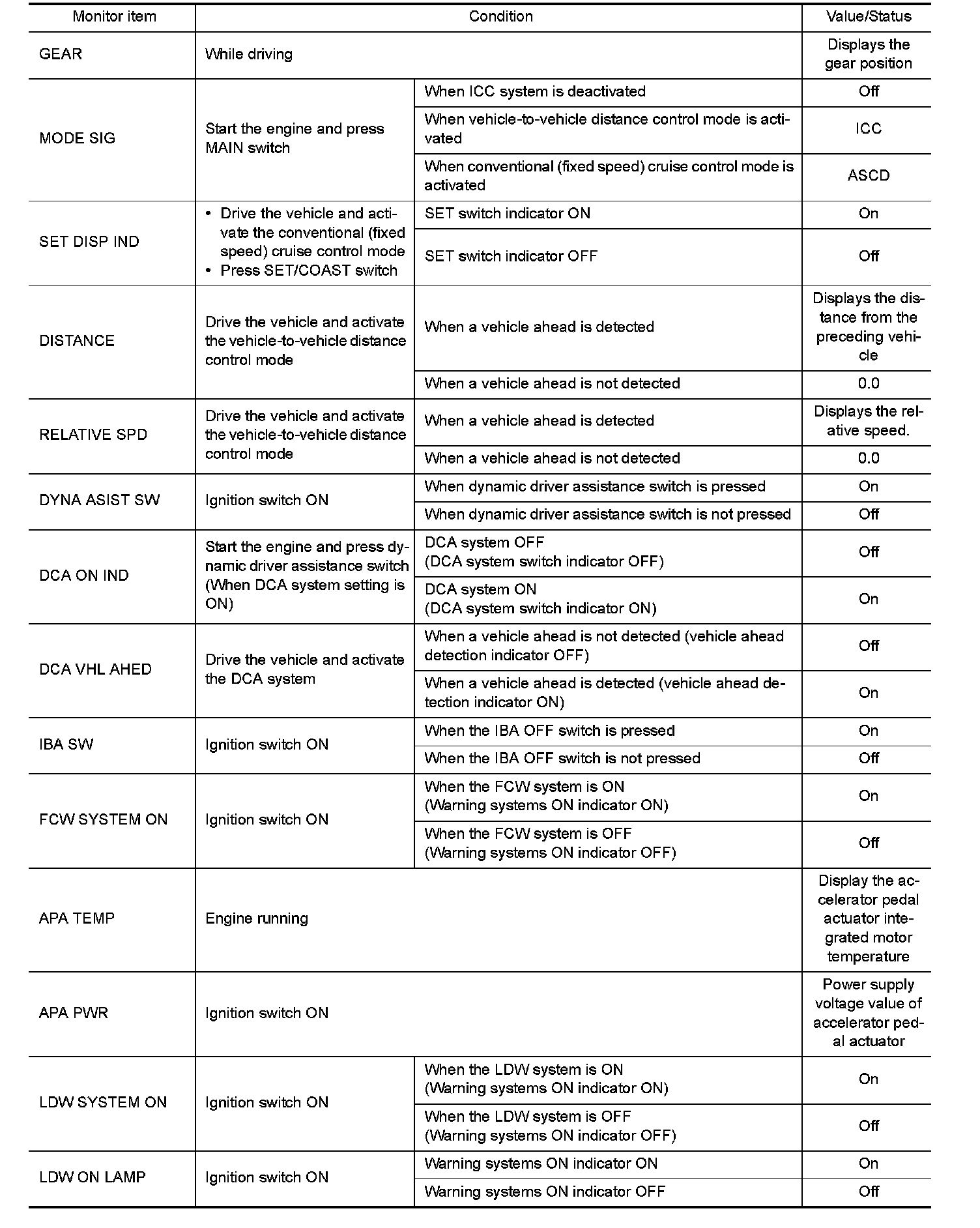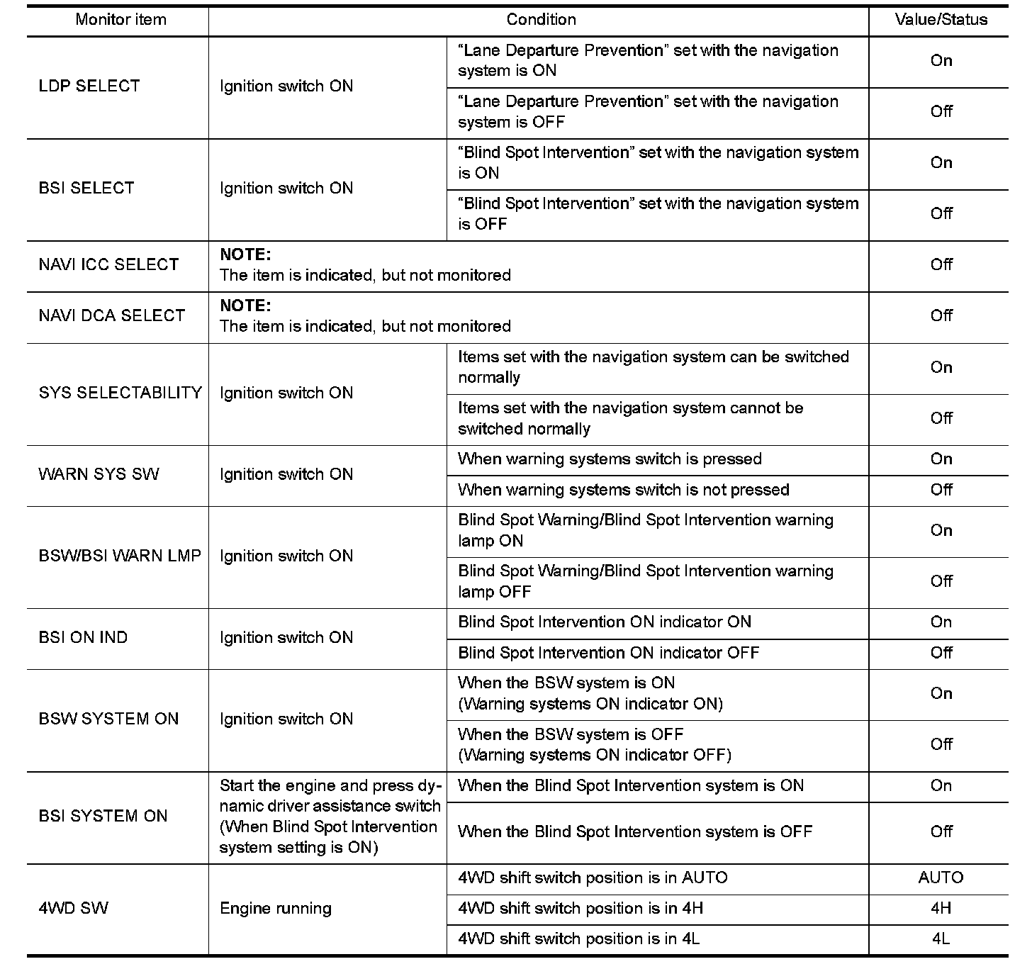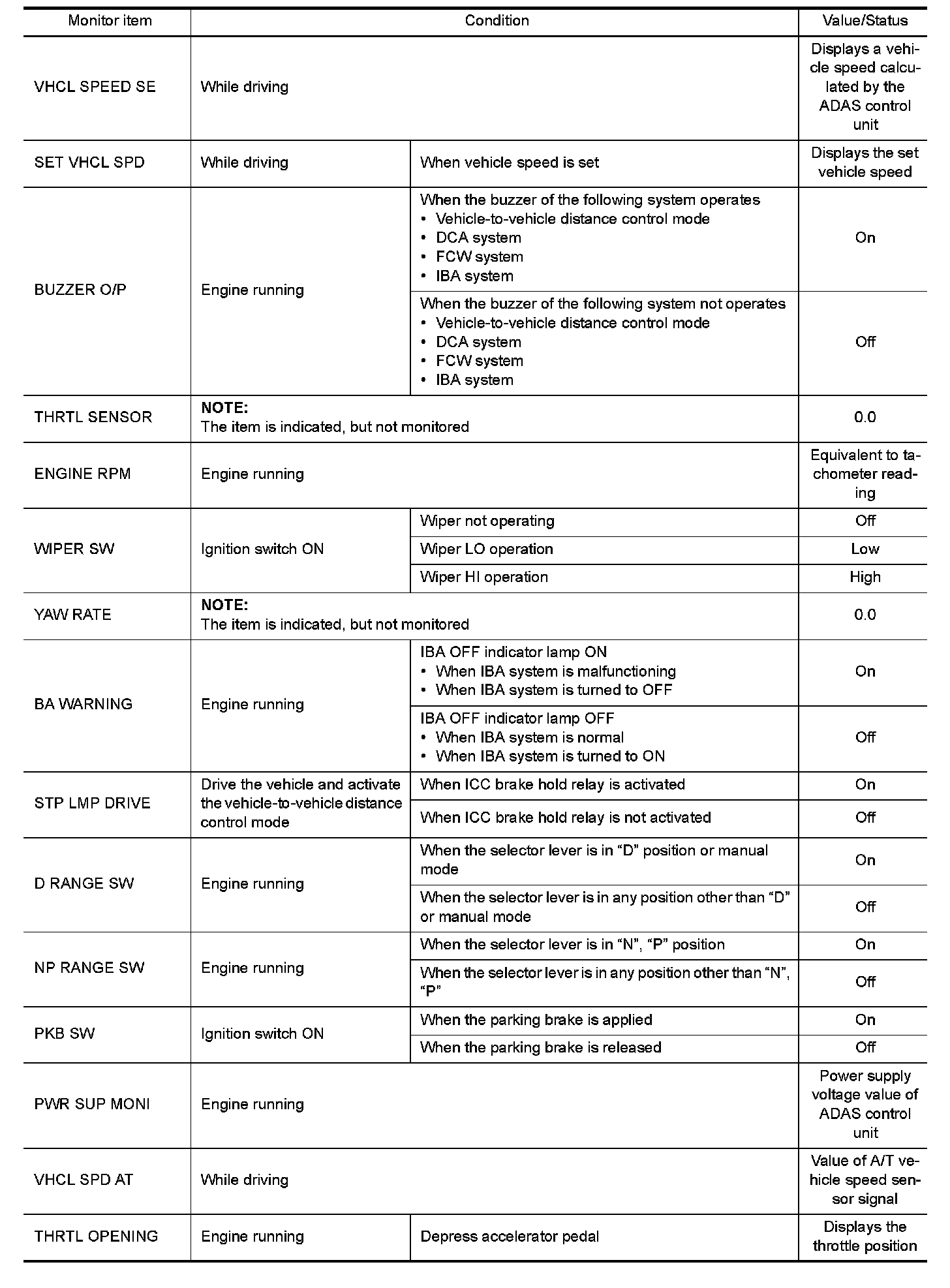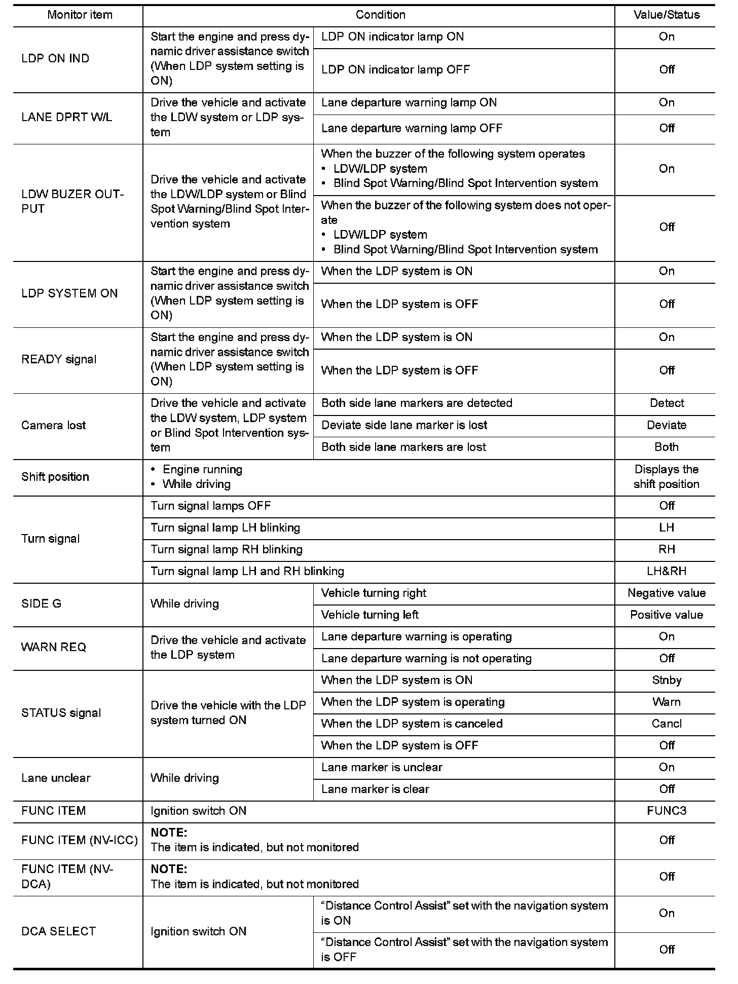 The following table includes information (items) inapplicable to this vehicle. For information (items) applicable to this vehicle, refer to CONSULT display items.