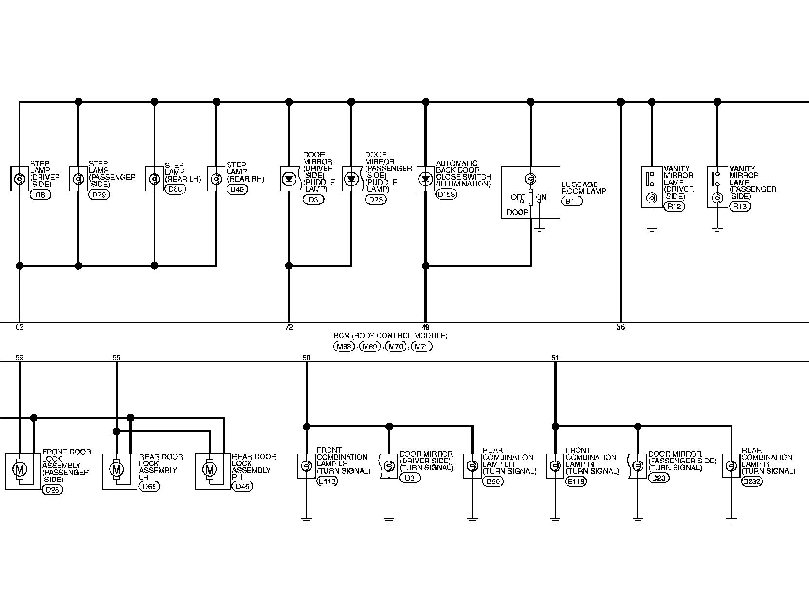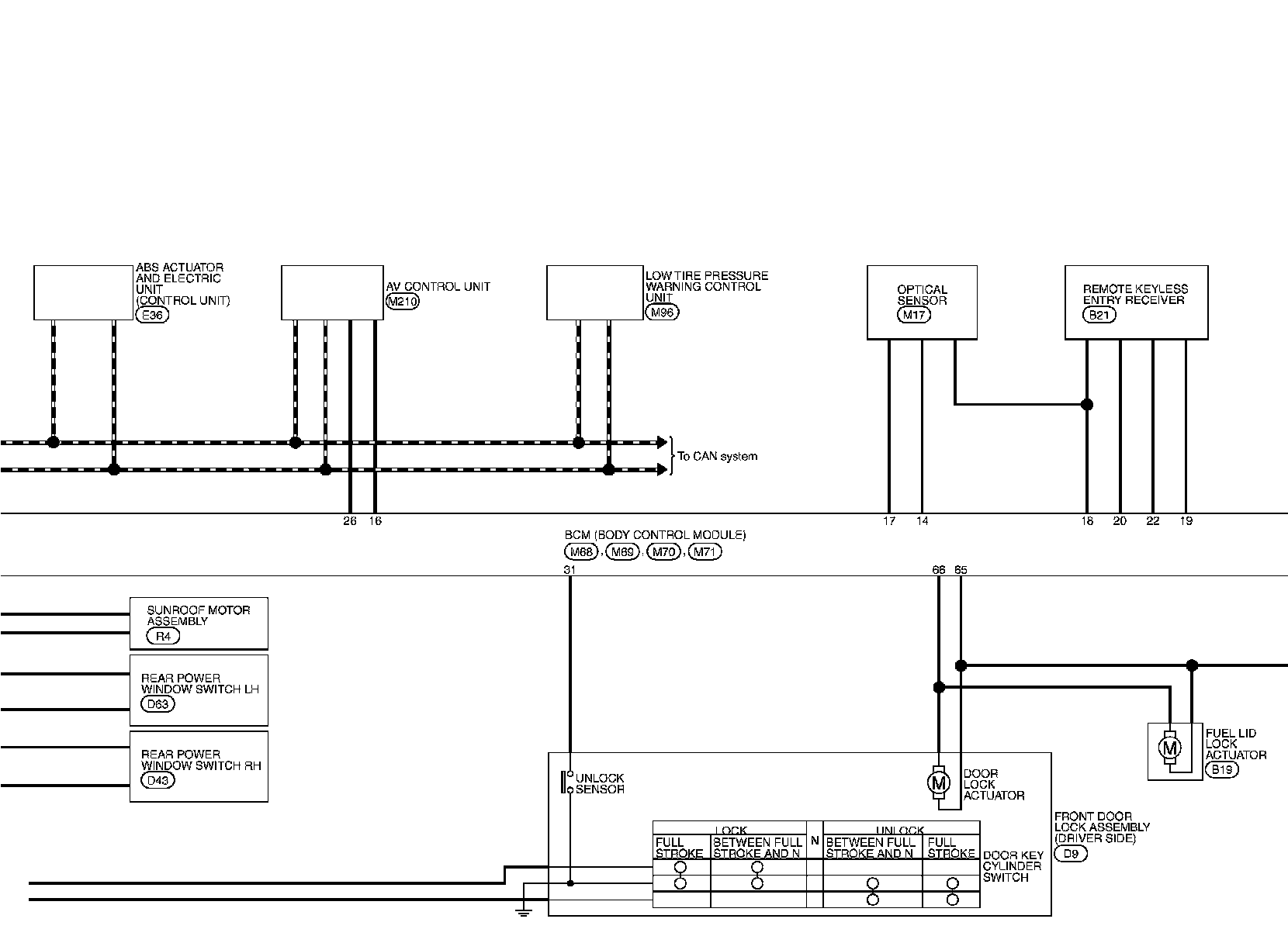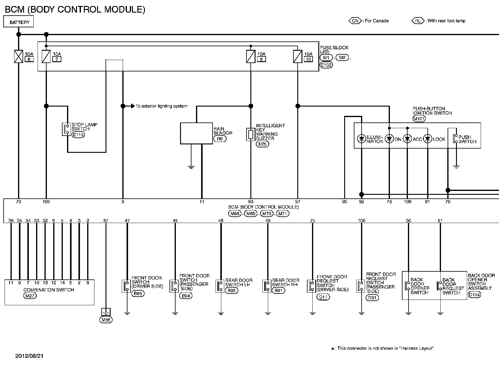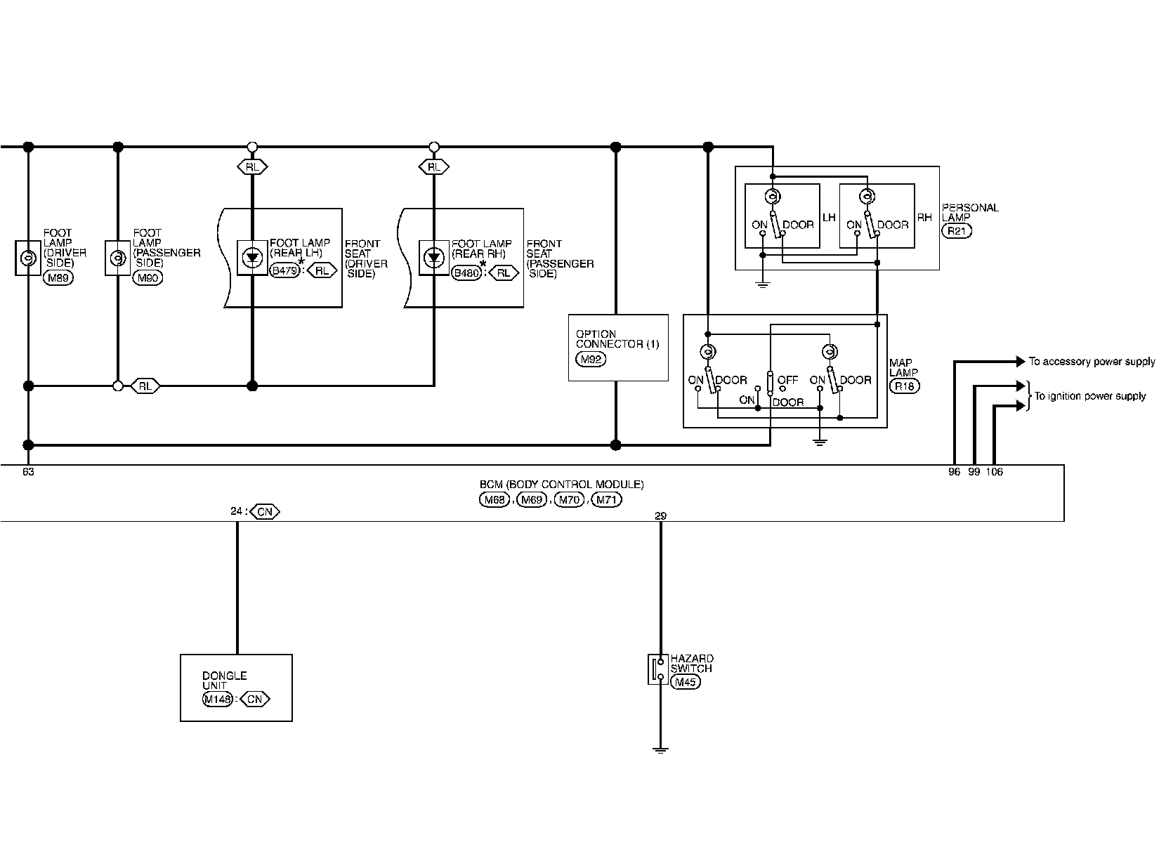 For connector terminal arrangements, harness layouts, and alphabets in a (option abbreviation; if not described in wiring diagram), refer to "Connector Information"