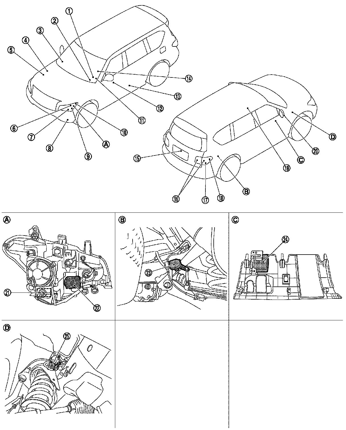 *: With headlamp aiming control system (manual) models
