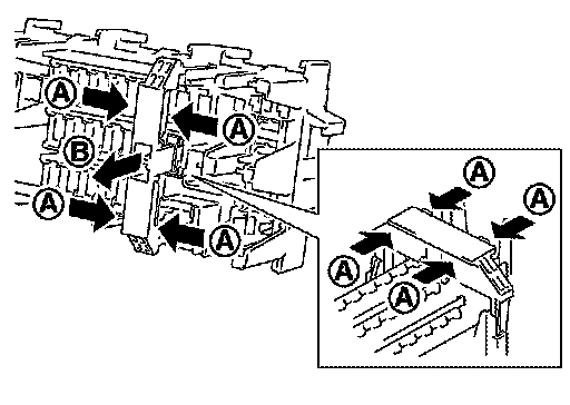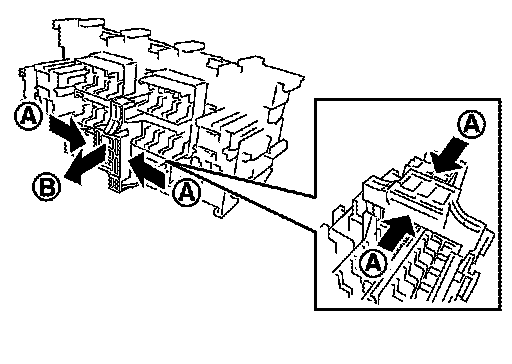 3.Press pawl (A) and tilt to disengage the extended storage fuse switch. Press pawl (B) and tilt to remove the extended storage fuse switch.