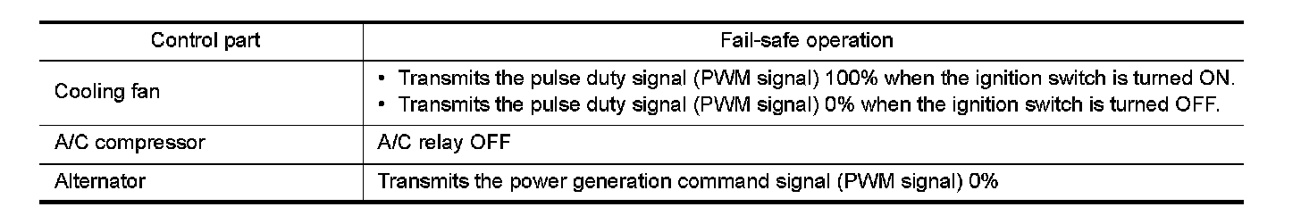 When CAN communication with ECM and BCM is impossible, IPDM E/R performs fail-safe control. After CAN