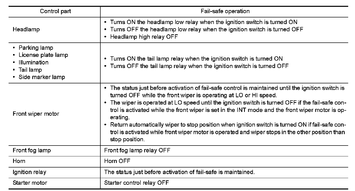 - If the ignition relay cannot turn OFF due to contact seizure, it activates the tail lamp relay for 10 minutes to alert the user to the ignition relay malfunction when the ignition switch is turned OFF.