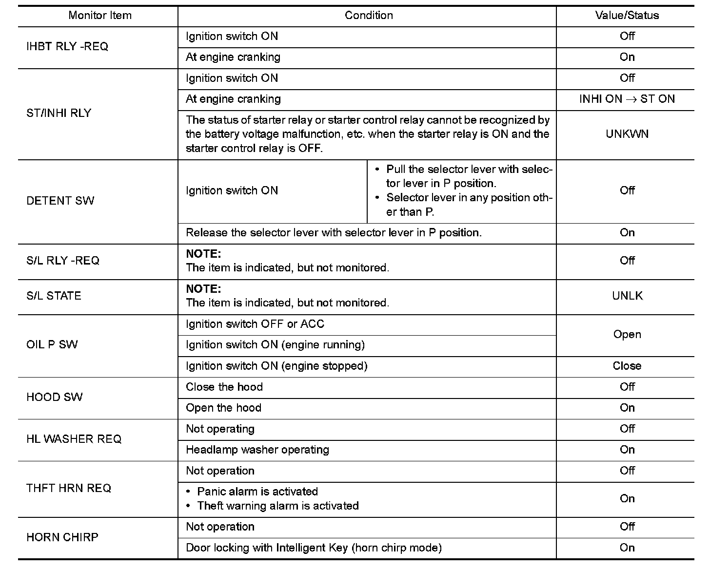 The following table includes information (items) inapplicable to this vehicle. For information (items) applicable to this vehicle, refer to CONSULT display items.