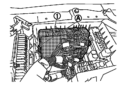 3.Remove the IPDM E/R (1) while pressing the pawls (A).