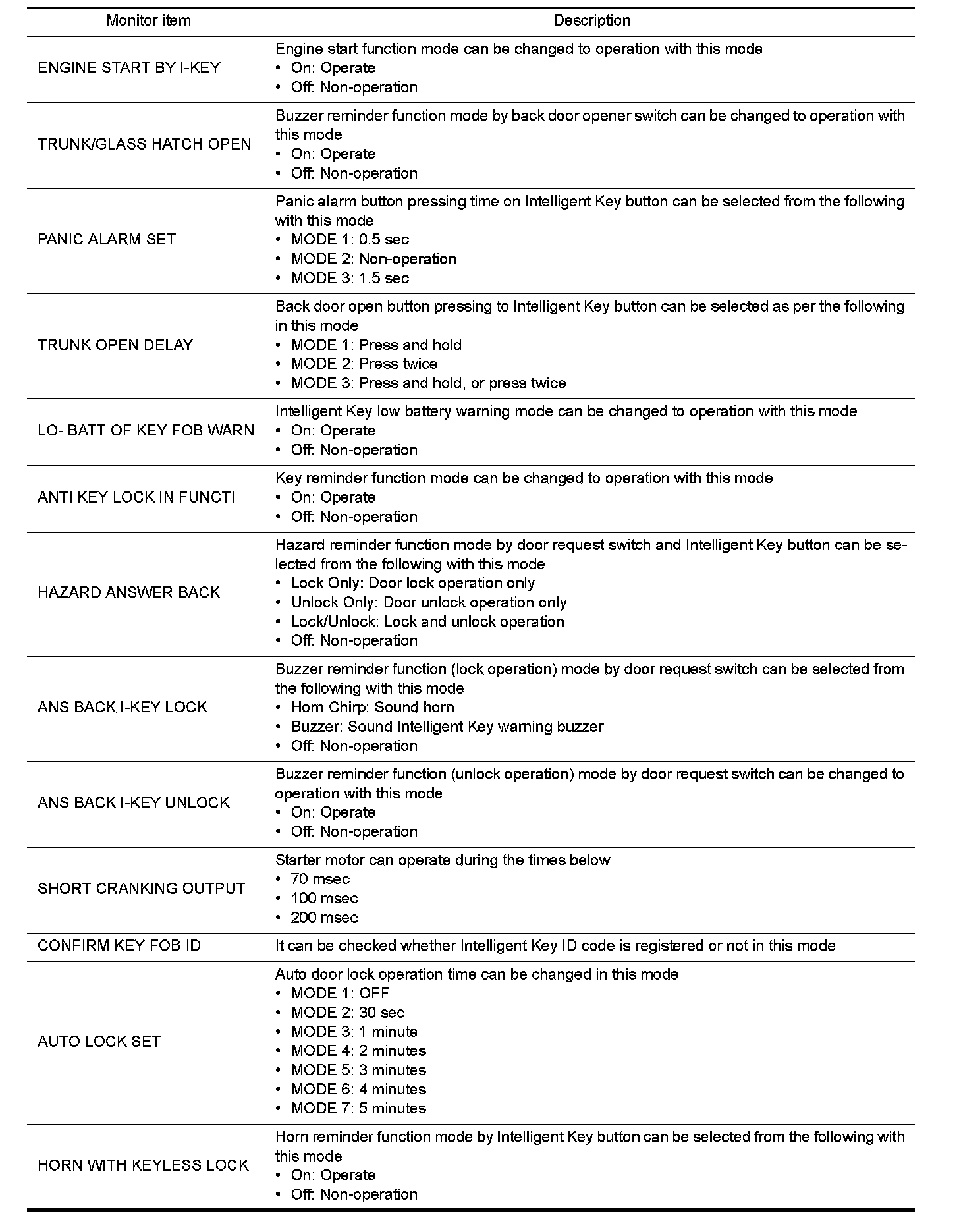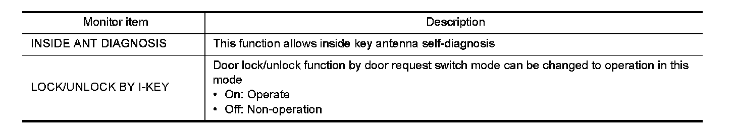 INTELLIGENT KEY : CONSULT Function (BCM - INTELLIGENT KEY)