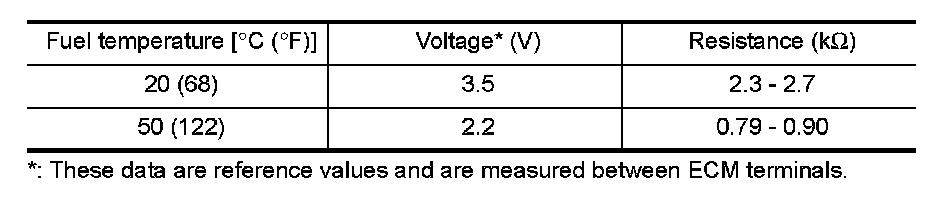 The fuel tank temperature sensor is used to detect the fuel temperature inside the fuel tank. The sensor modifies a voltage signal from the ECM. The modified signal returns to the ECM as the fuel temperature input. The sensor uses a thermistor which is sensitive to the change in temperature. The electrical resistance of the thermistor decreases as temperature increases.