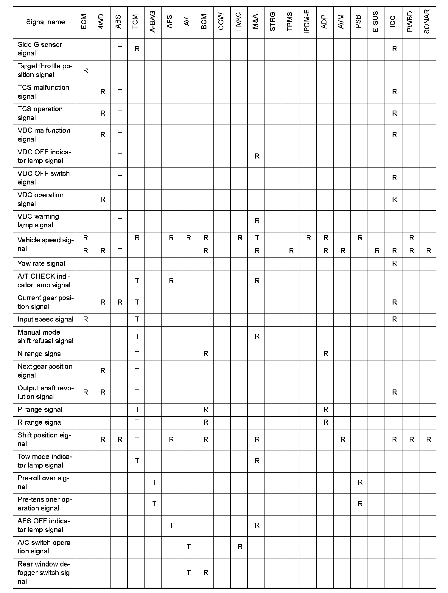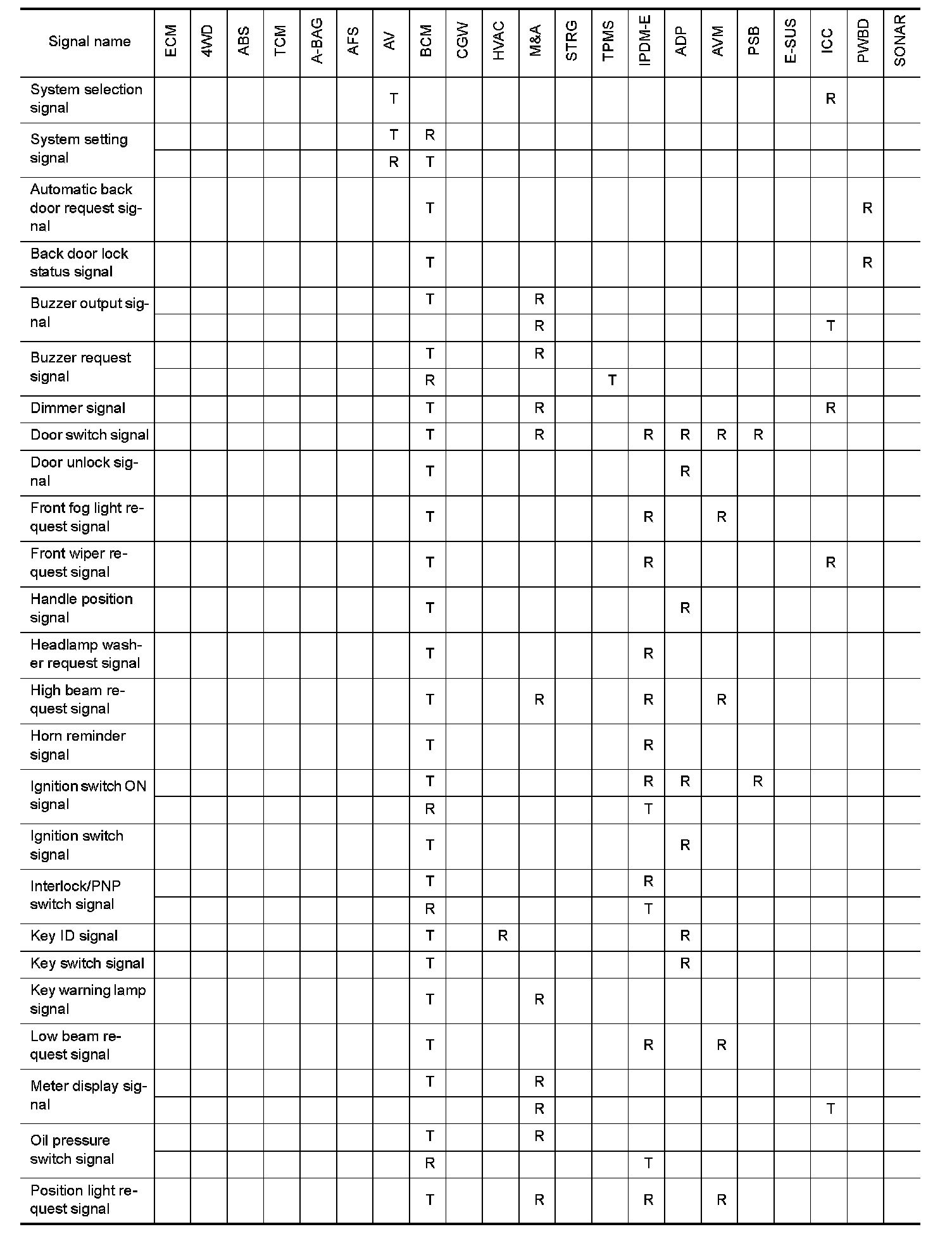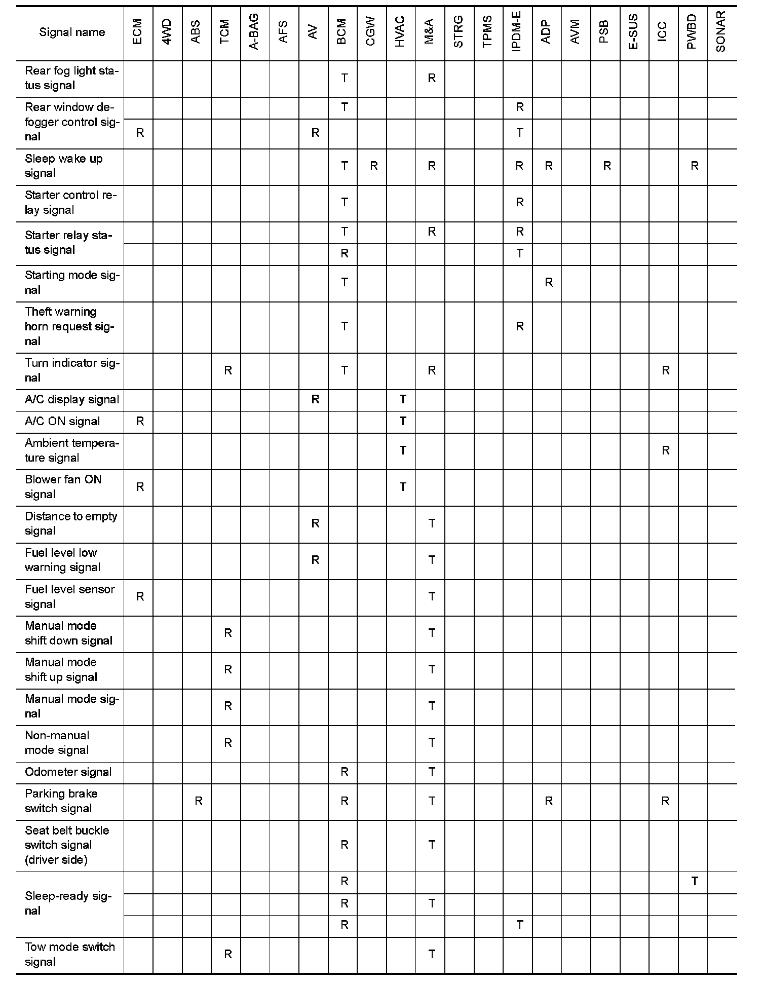 Refer to "How to Use CAN Communication Signal Chart" How to Use CAN Communication Signal Chart for how to use CAN communication signal chart.