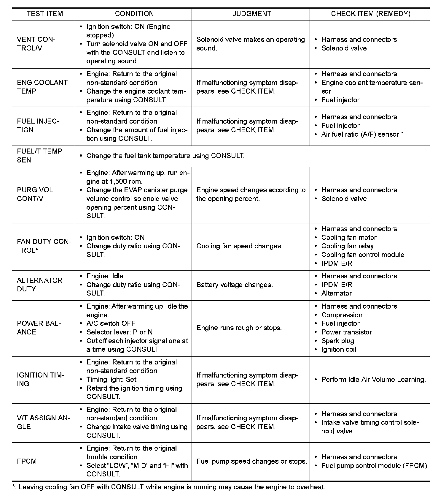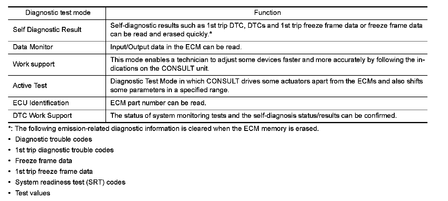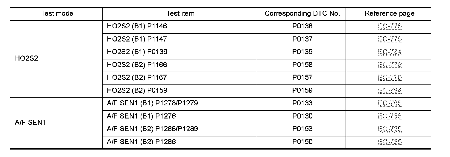 Regarding items of DTC and 1st trip DTC, refer to "DTC Index" Testing and Inspection.