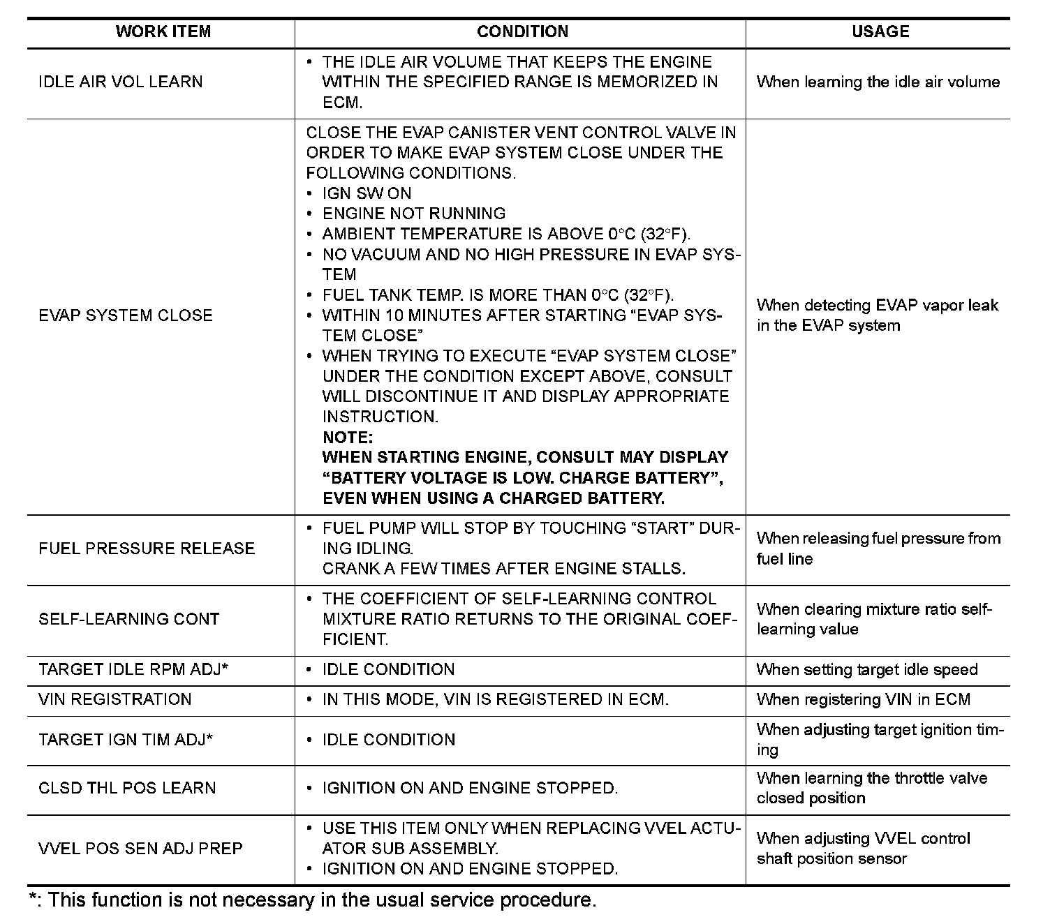 *: This function is not necessary in the usual service procedure.
