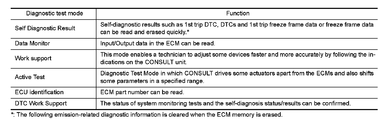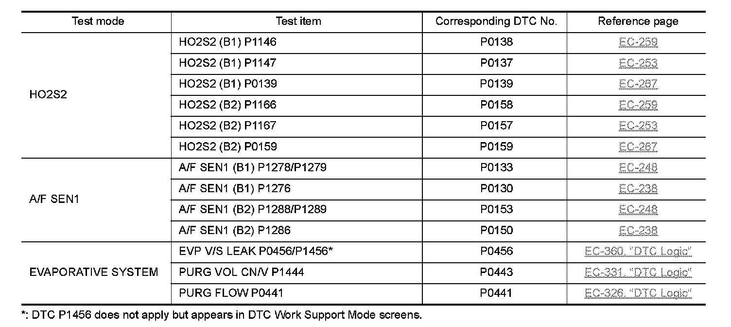 Regarding items of DTC and 1st trip DTC, refer to "DTC Index" Testing and Inspection.