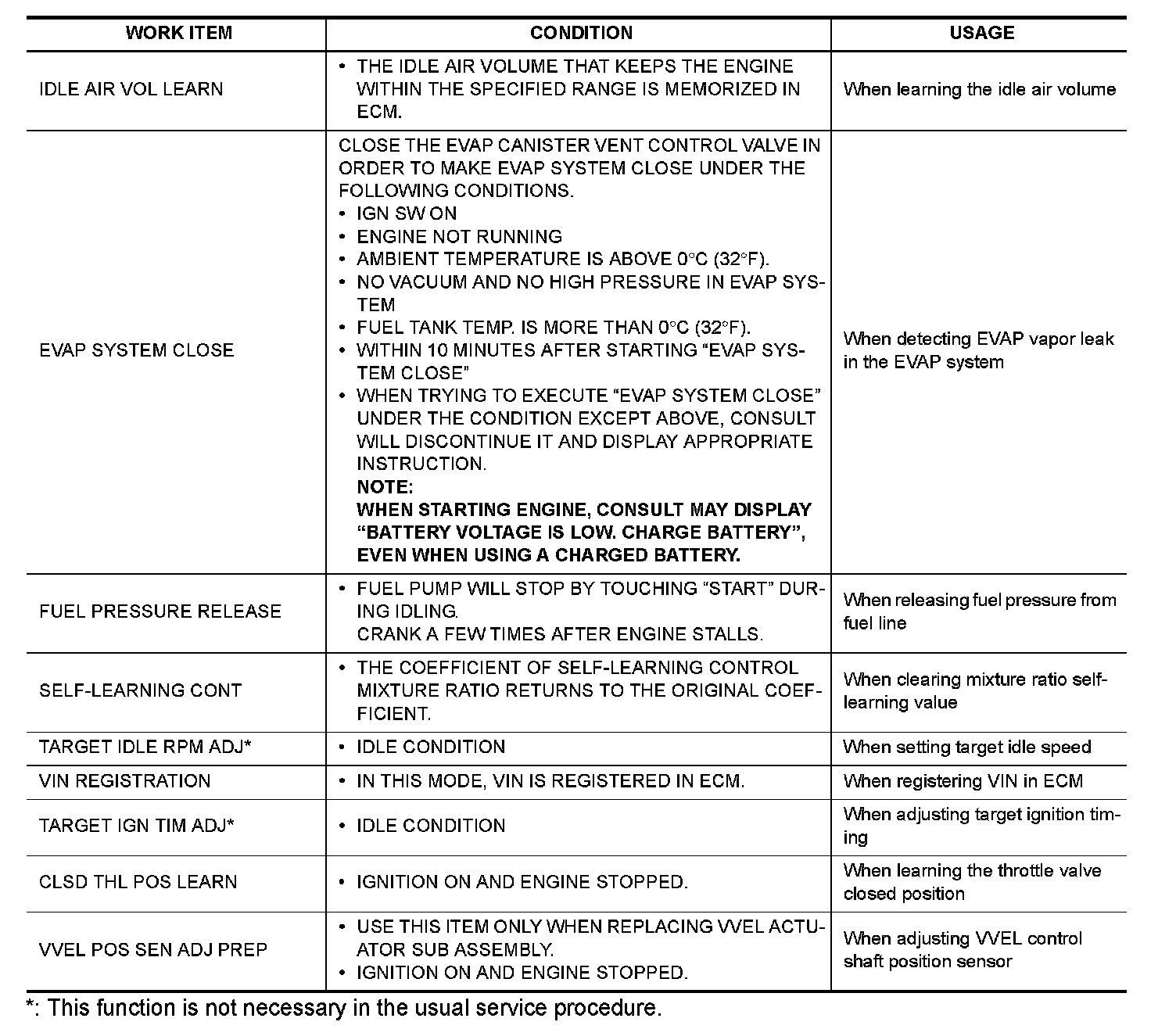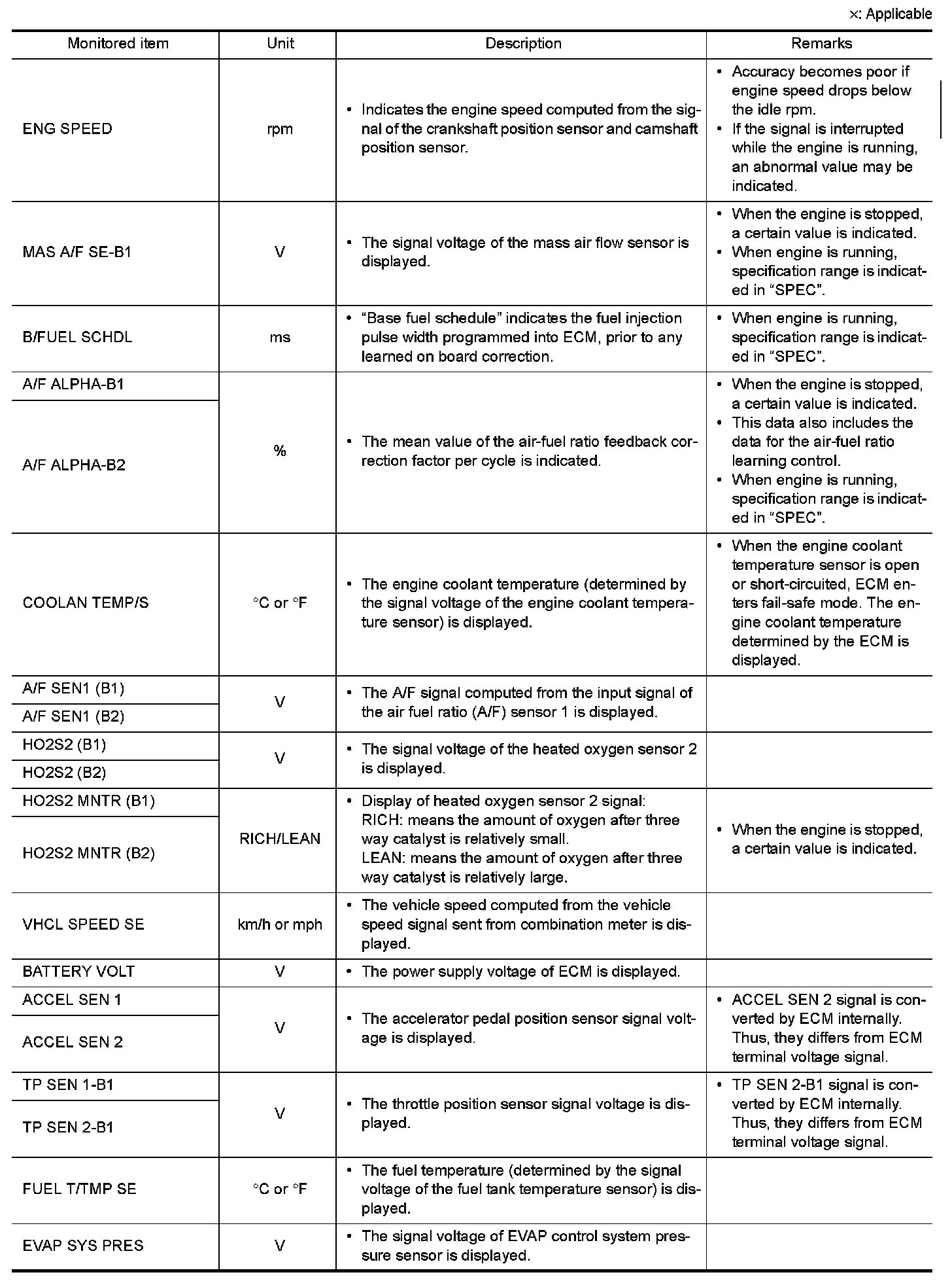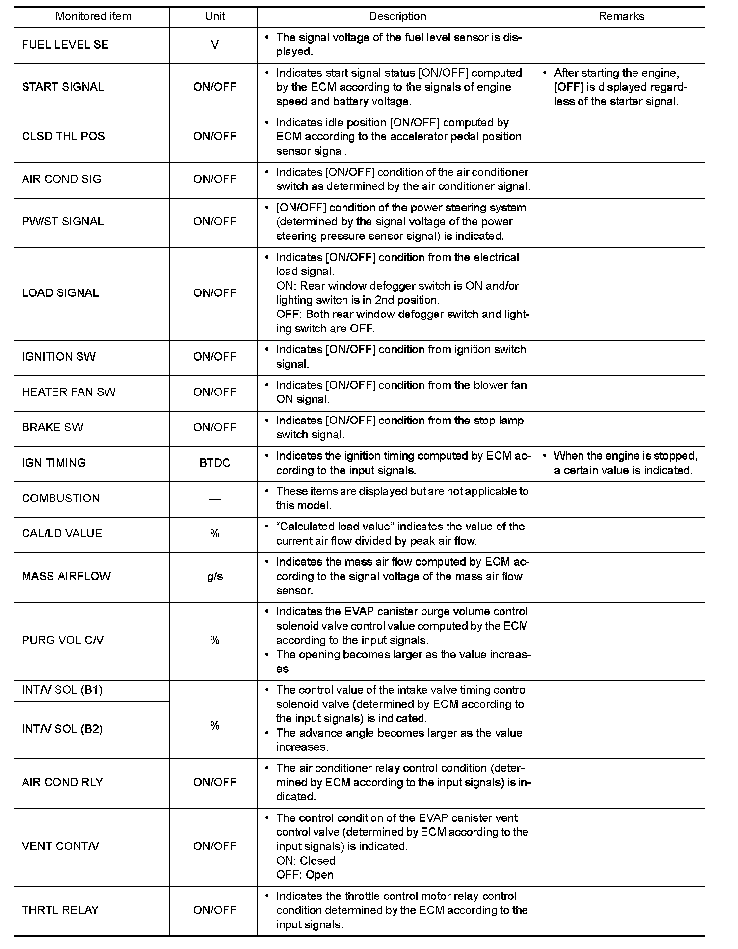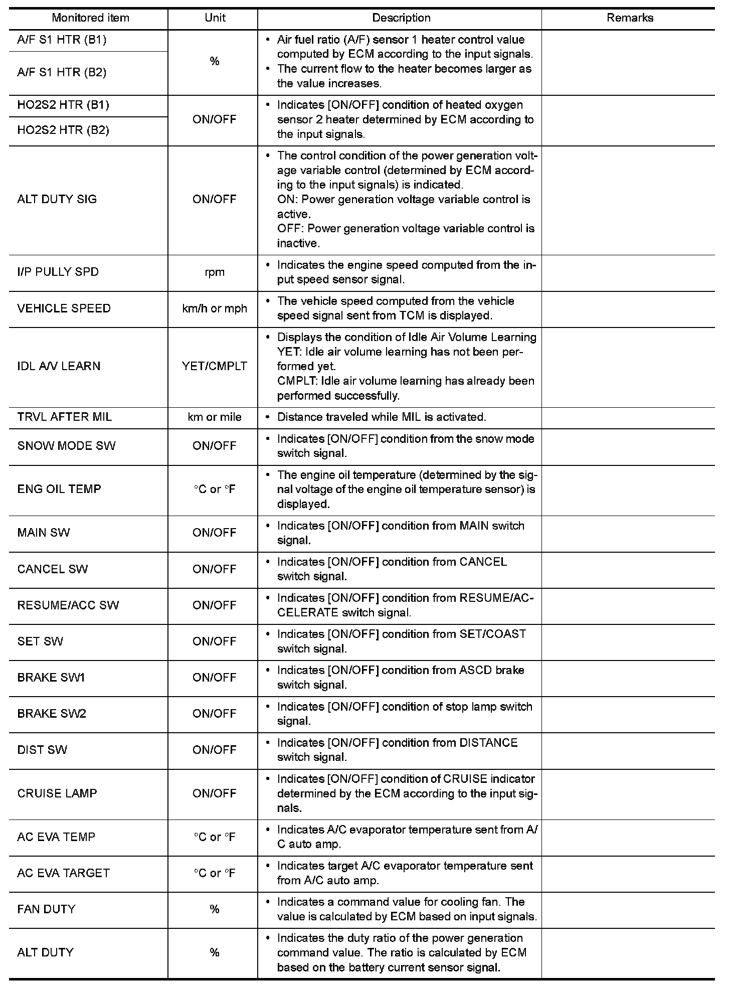 The following table includes information (items) inapplicable to this vehicle. For information (items) applicable to this vehicle, refer to CONSULT display items.