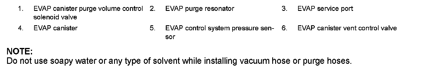 Do not use soapy water or any type of solvent while installing vacuum hose or purge hoses.
