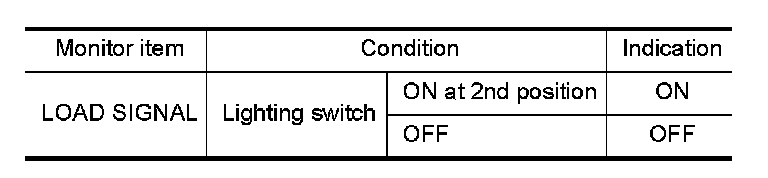 3.Select "LOAD SIGNAL" and check indication under the following conditions.